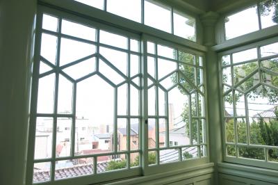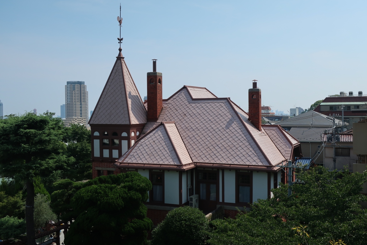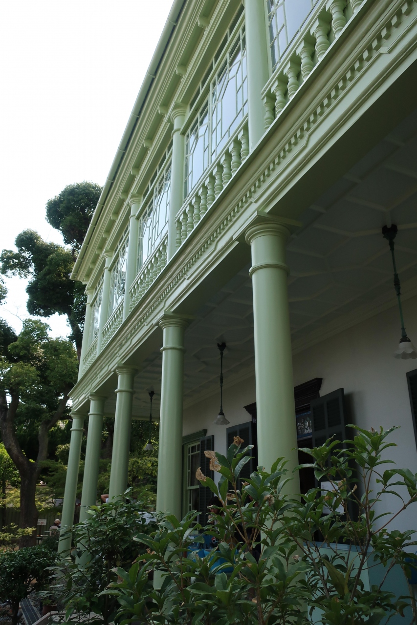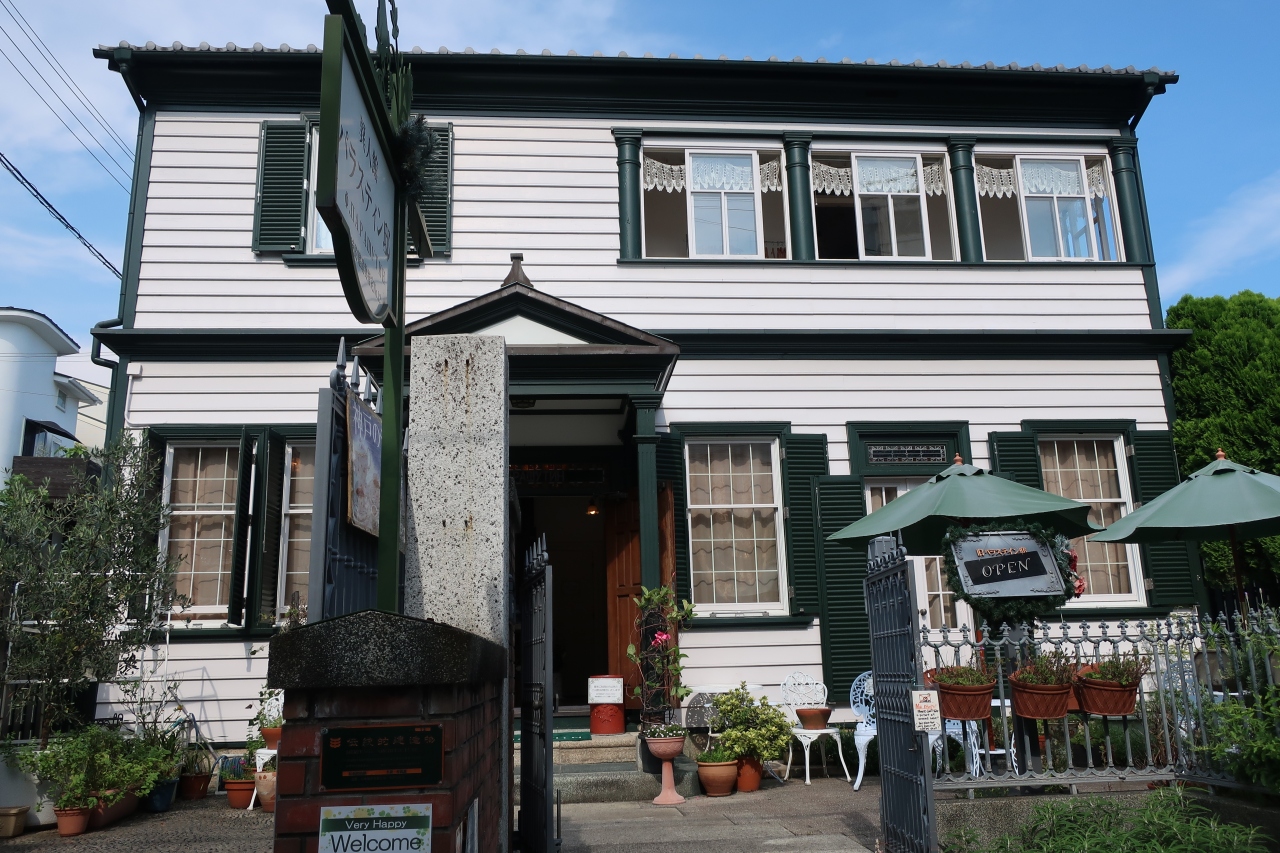 神戸 北野の天神坂の途中にある異人館の一つです。明治期にロシアの貿易商パラスティンの邸宅として建てられた白い外壁に、緑いろの窓が特徴的な洋館です。現在はカフェに改装されており異人館と言うよりは、お店と言って良いでしょう。外観からの見学で十分かと思います。
