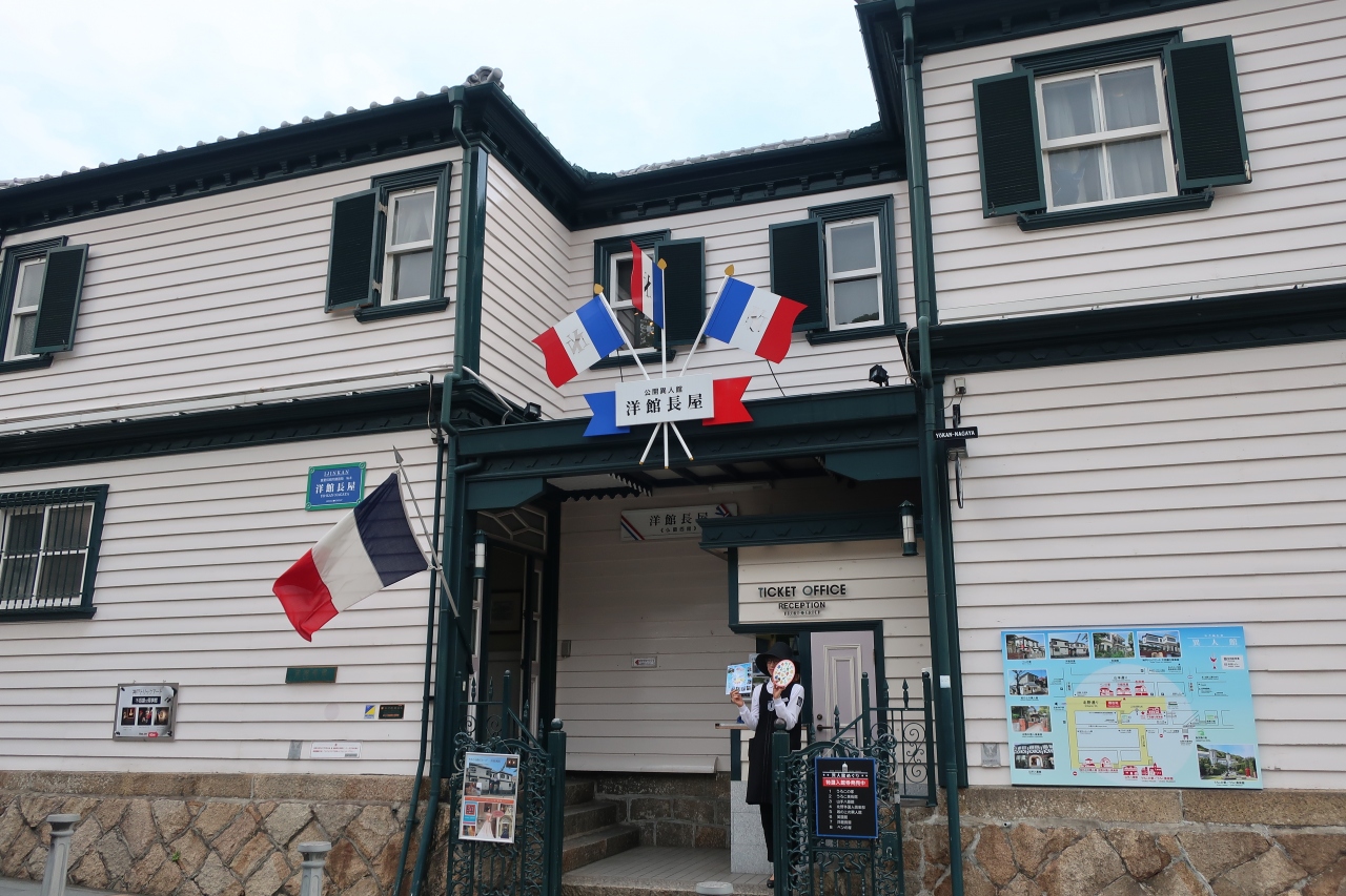 神戸 北野の北野通り沿いにある異人館の一つです。左右対称の二つの白い外壁の建物が真ん中で繋がった明治37年築の建物です。建物自体はどこがフランス形式なのかは分かりません。中に入るとアールヌーヴォーのガラスで知られるガレ、ラリック等の作品や豪華な調度品がフランスらしさを物語っています。