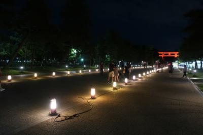 平安神宮の前を通ると普段は大鳥居だけがライトアップされているのですが、京の七夕 岡崎プロムナード 星の饗宴と言う催しが開かれ、平安神宮応天門から大鳥居まで花灯路になっていて、いつもと違う雰囲気でした。真夏の暑い時期にこの様な催しがあると癒されますね。- 旅行時期