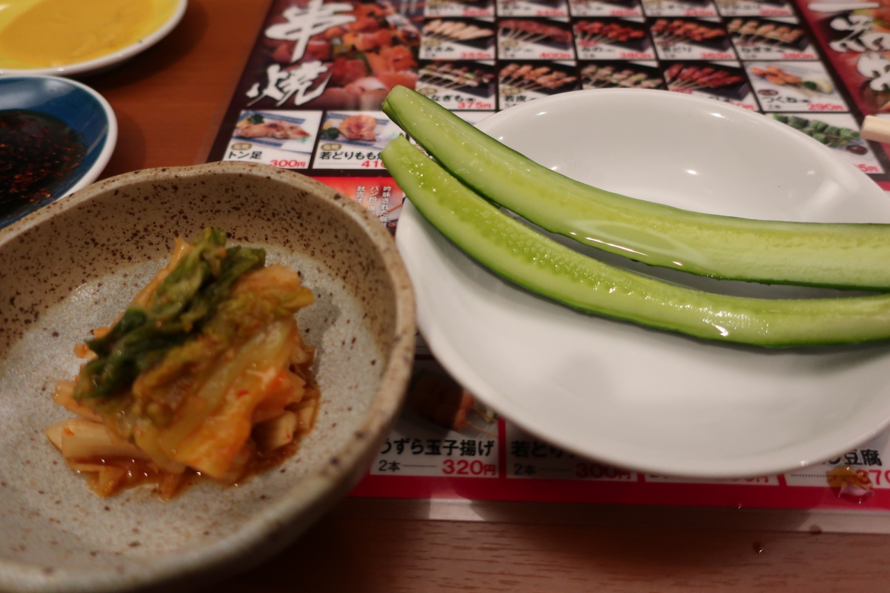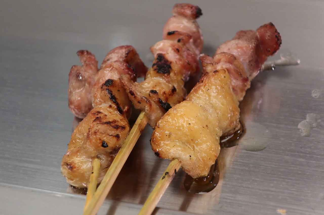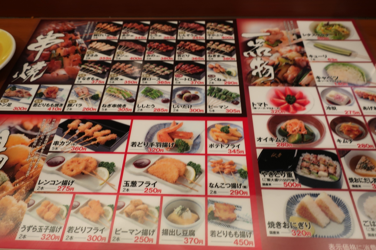 メニューはシンプルで焼き鳥を中心に揚げ物、トマト、キュウリなどの野菜があります。この店が人気なのは、ともかく焼き鳥を焼く店長の威勢が良い所。話していて面白いだけでなく、焼き方もうまいし、愛想も良い。