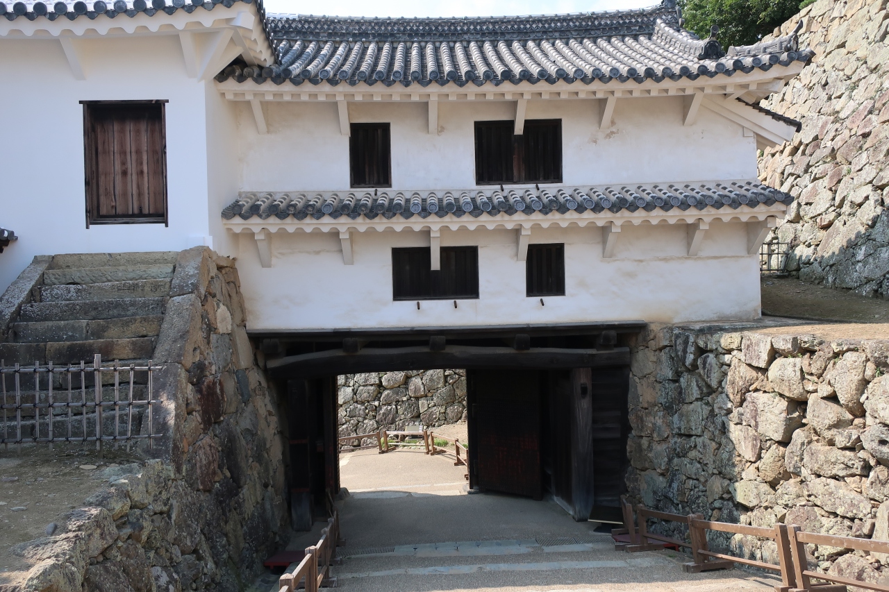 姫路城の菱の門を潜り天守に向かうコース3番目にある櫓門です。この門を含む門の前の狭間のある壁、坂はしょっちゅう映画やテレビの時代劇の撮影で使われるポイントです。有名なのは「暴れん坊将軍」。
