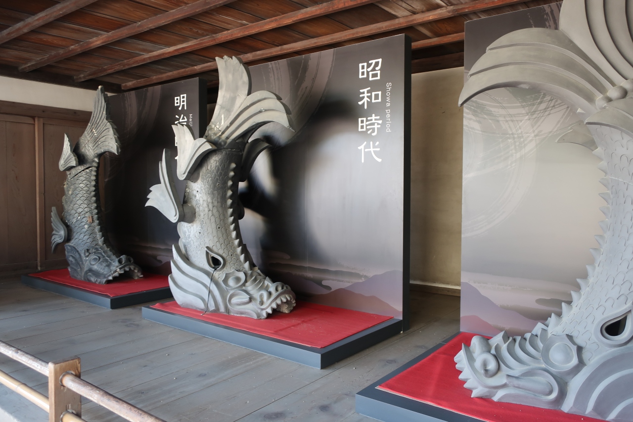 また、門の左手には明治、昭和、平成各時代の鯱が展示されているのも必見です。明治期のものが一番精緻に見えます。- 旅行時期