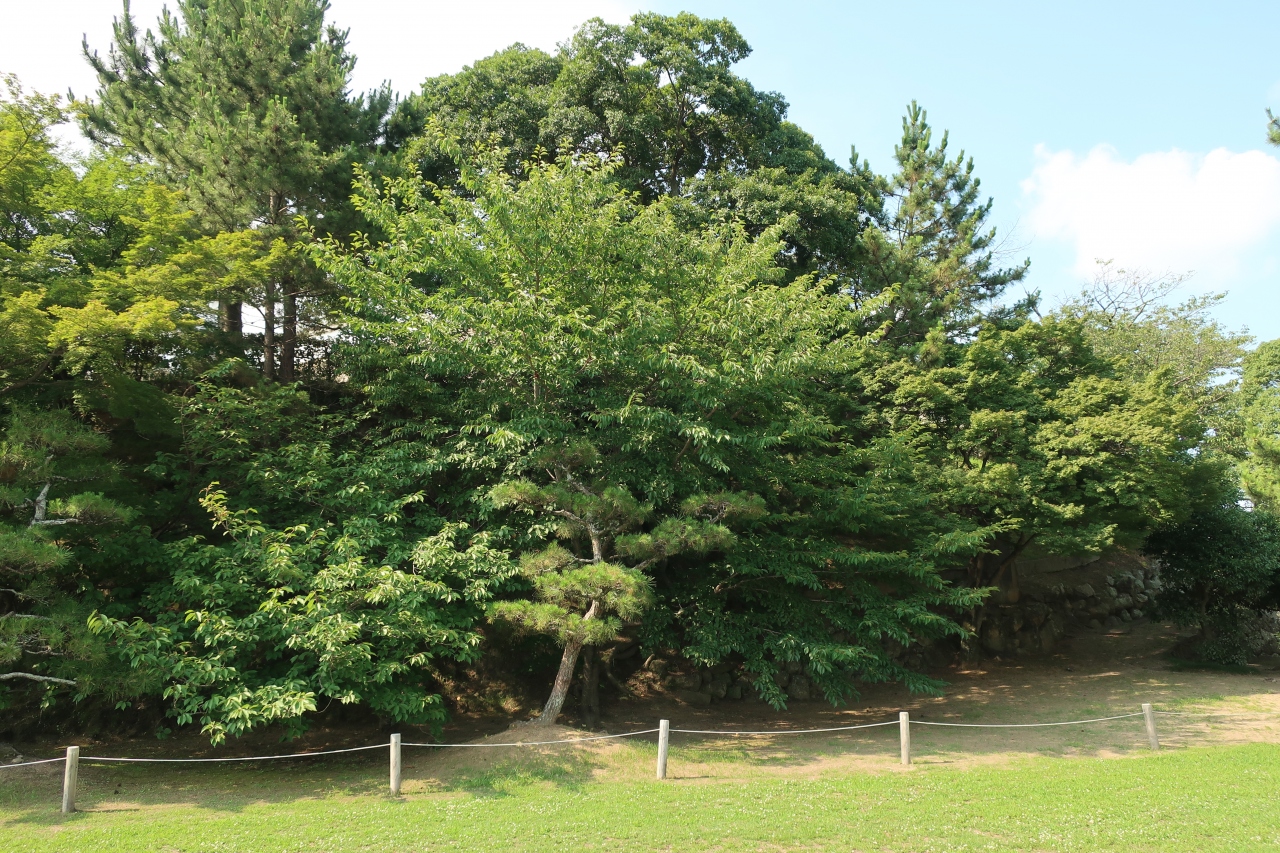 姫路城の登城口を右手に行ったところに黒田官兵衛ゆかりの石垣がありますが、その下側が下山里丸です。わざわざ言ってみたのですが、木々に覆われた上に、手前にロープが張られており、分かりづらく、古い時代の石垣をちらちらとしか見ることが出来ません。そのためか訪れる人は皆無と言った感じ、よっぽどの城好きしか行かなくていい所でしょう。