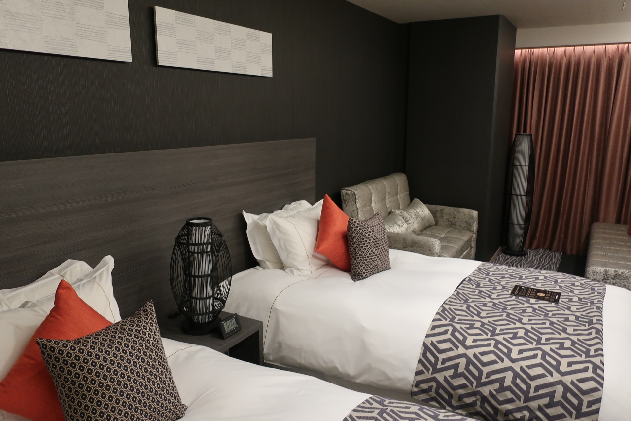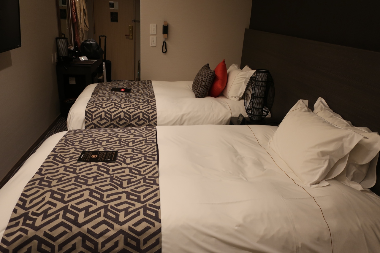 宿泊したデラックスツインの部屋は細長い部屋でドアを入るとユニットバス、真ん中にベッド、奥にソファがある広い作りとなっておりリラックスできるのですが、窓の外は隣のビルのの壁で眺めは最悪(たまたまこの部屋だけかもしれません)。朝起きても日が入って来ません。
