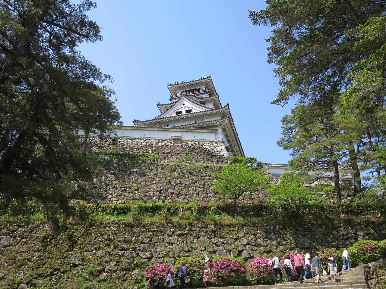 高知の城下町の核である高知城は大高坂山に築かれています。現存天守が残る場内には、全国でここにだけ残る本丸御殿懐徳館の他、黒鉄門、追手門、詰門等が当時のまま残っており重要文化財されています。