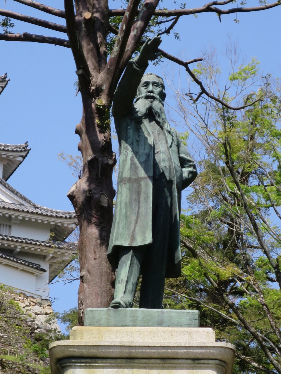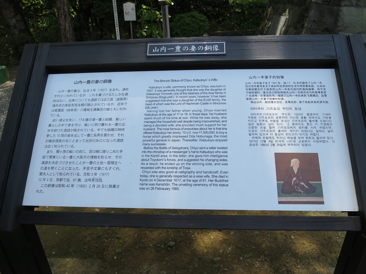 山内一豊の銅像は追手門の外側城外に対し妻の銅像は城内と、妻の方が格上なのが面白いです。- 旅行時期