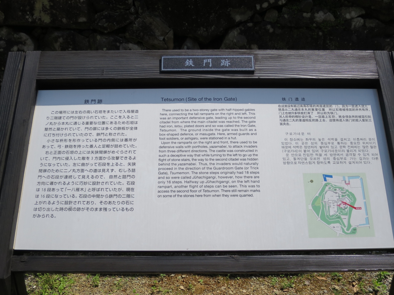 鉄門跡の石段を上がると枡形になっており、さらに石段は左に続いているのが分かり、城の防御上最重要な門であったことが良く分かります。- 旅行時期