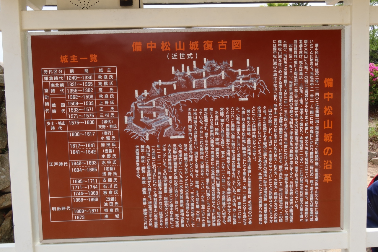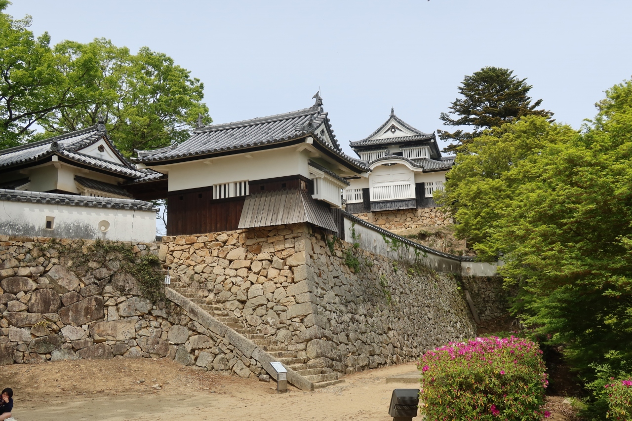 高梁の臥牛山にあるお城です。江戸時代からそのままの姿で残っている現存天守は全国に12城ありますが、その中で唯一の山城が備中松山城です。現在もふいご峠までは車で行くことが出来ますが、そこから徒歩で登って20分程掛かります。天守、二重櫓、土塀が残っており岩の上に築かれた石垣も見事。行き辛い山城ですが、大変見応えのあるお城です。