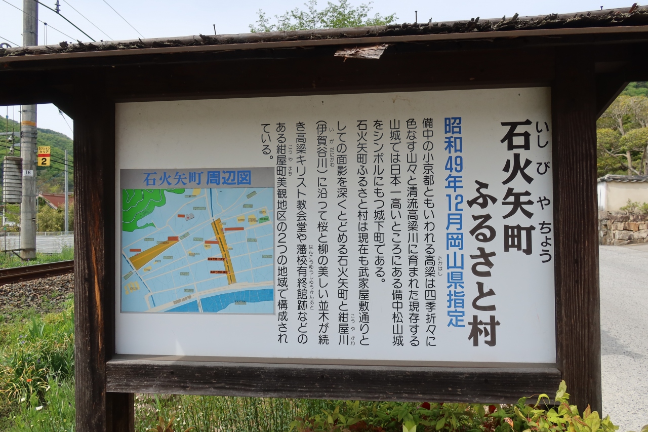 高梁市の中心部を流れる紺屋川沿いの紺屋川筋は紺屋川美観地区とも呼ばれ、日本の道100選にも選ばれています。高梁川に流れ込む谷川の周りには桜の木が植えられ、城下町時代の商家が並んでおり、どこかで見た日本の風景と言った感じがします。