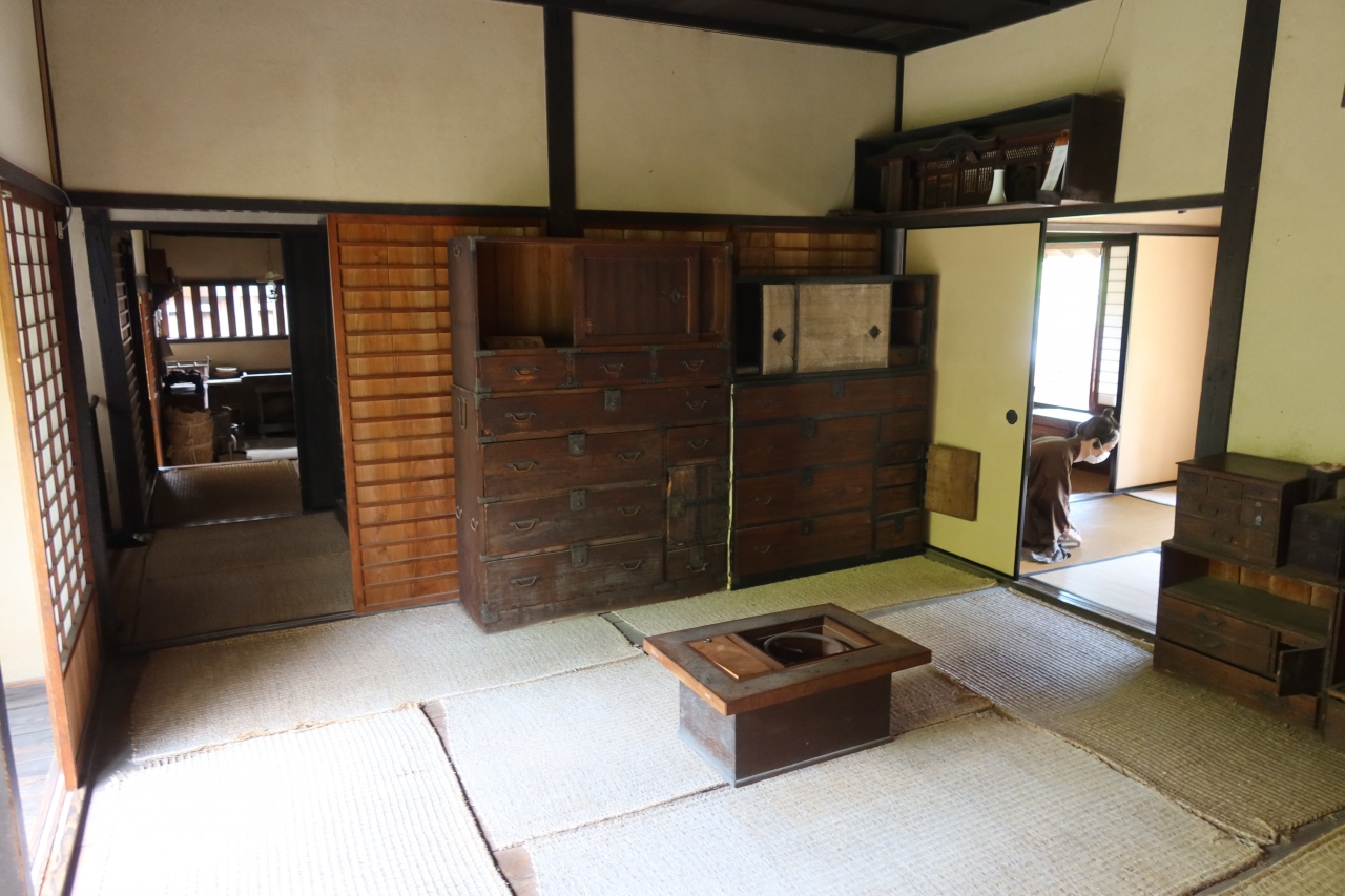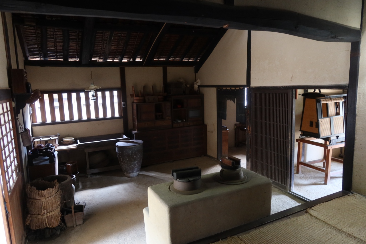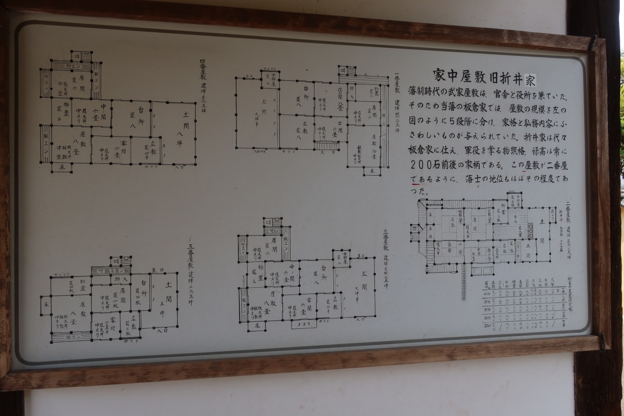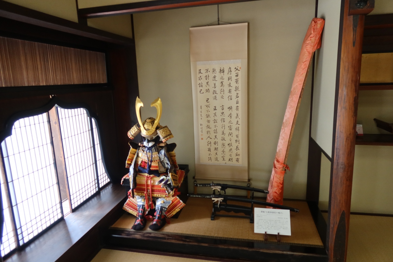 備中松山藩の武家町である石飛矢ふるさと村には2軒の武家屋敷が公開されています。その一つが旧折井家です。旧埴原家よりも格上の200石の武家が住んで居た屋敷は長屋門があり、広さも大きい武家屋敷です。中には当時の武家生活を示す人形が展示されているのですが、何とお辞儀するのでちょっとびっくりします。面白いのですが、不気味です。