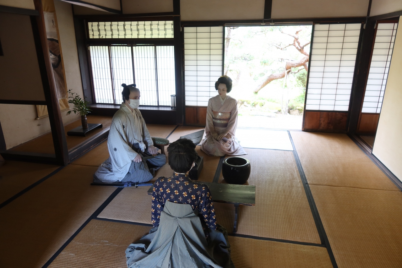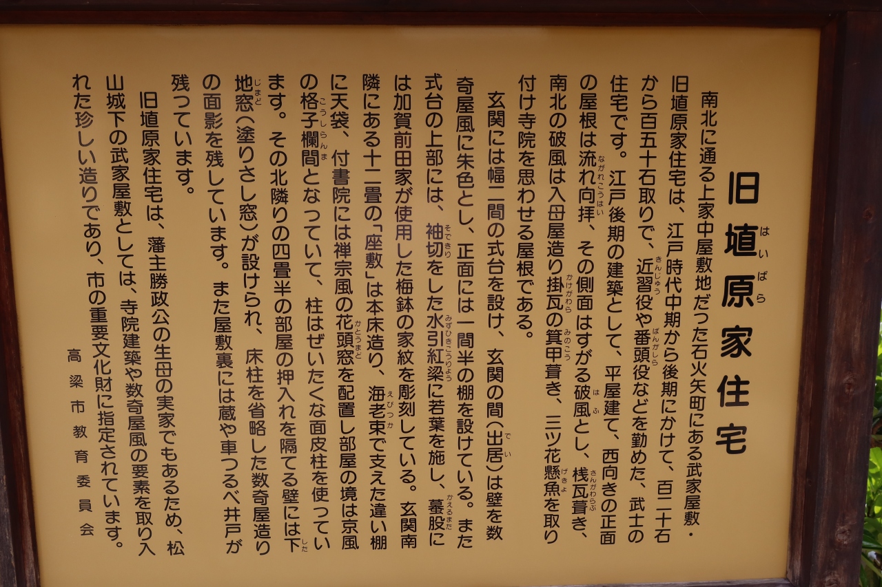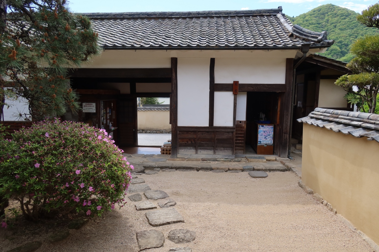 備中松山藩の武家町である石飛矢ふるさと村には2軒の武家屋敷が公開されています。その一つが旧埴原家です。江戸時代中期から後期の近習役や番頭役などを勤めた武士の住宅で、門を潜ると武家屋敷らしい立派な式台が正面にあり、中に入ると付け書院や、小庭に面した縁側など、格式の高さがうかがえる武家屋敷です。