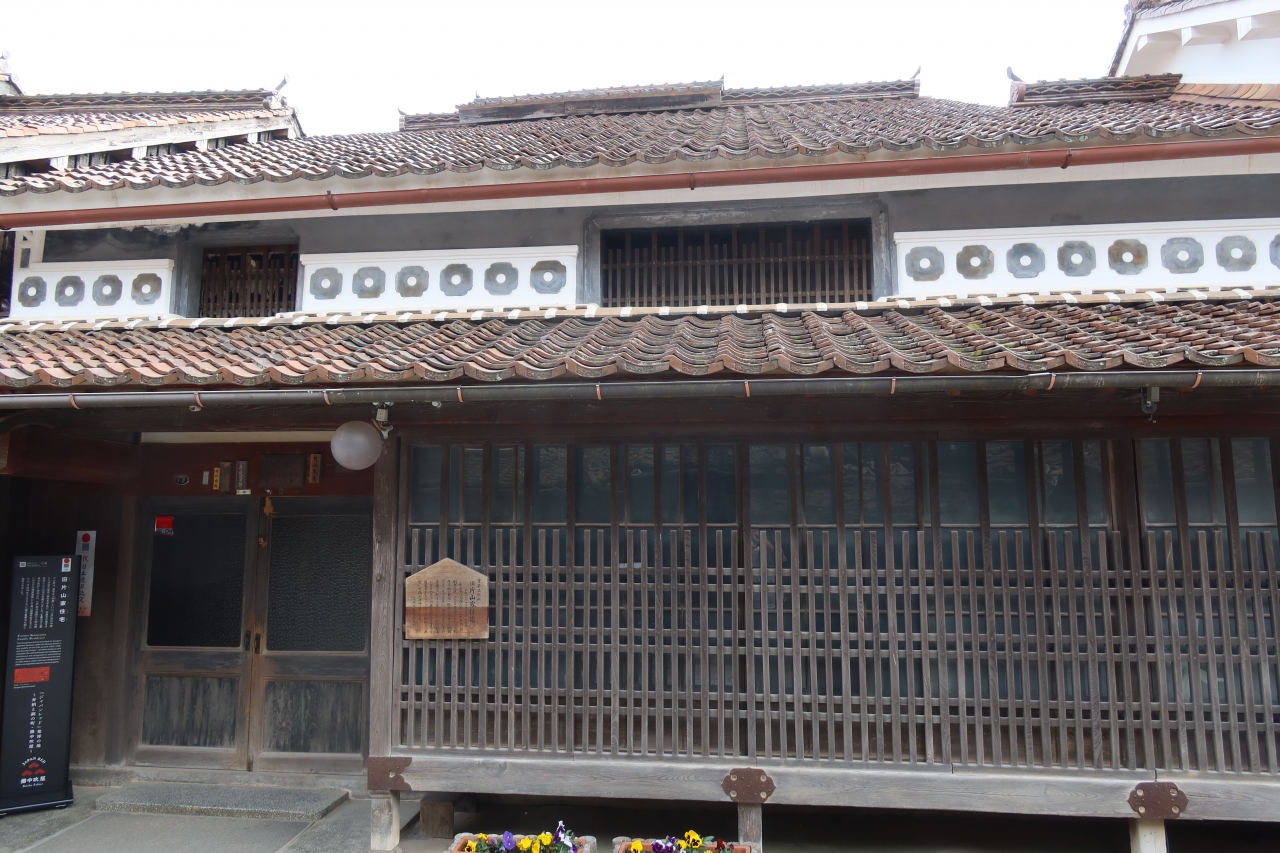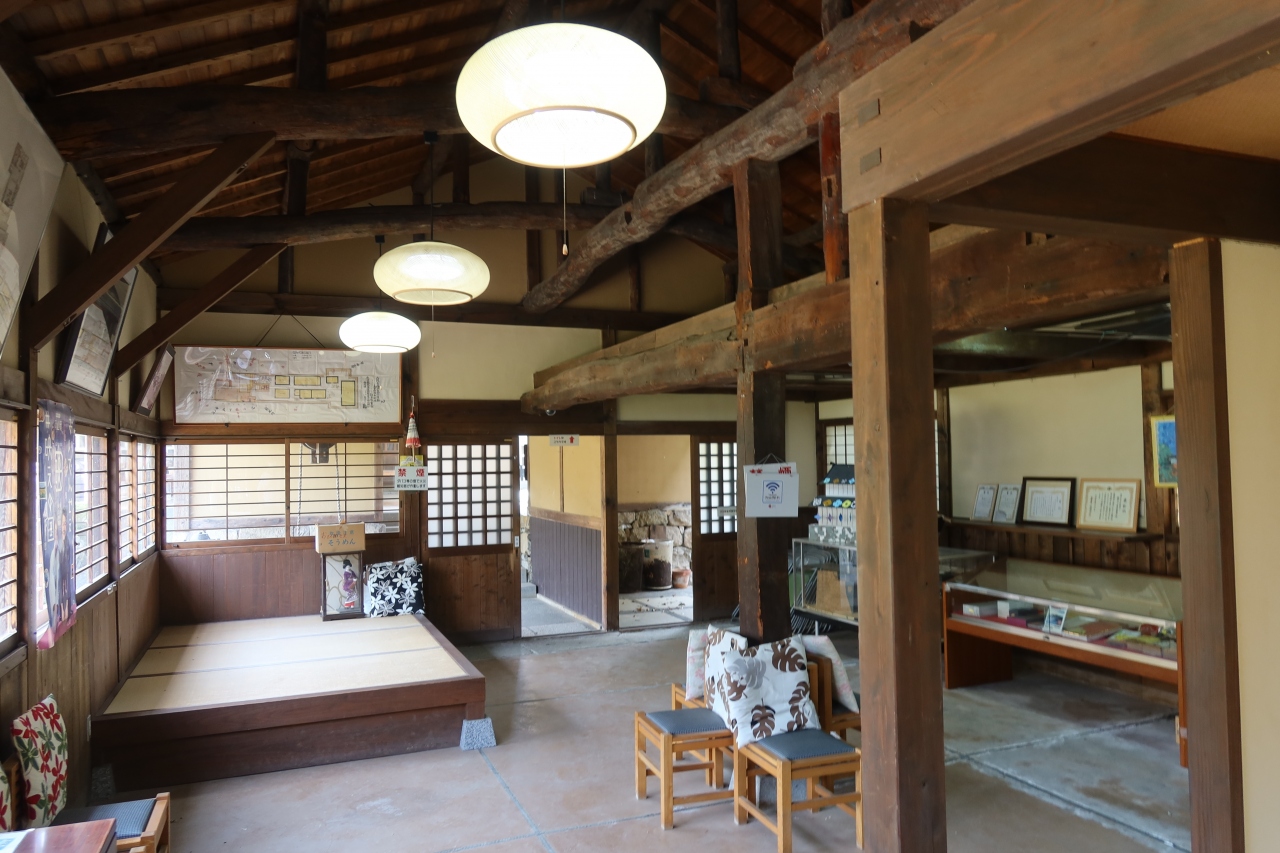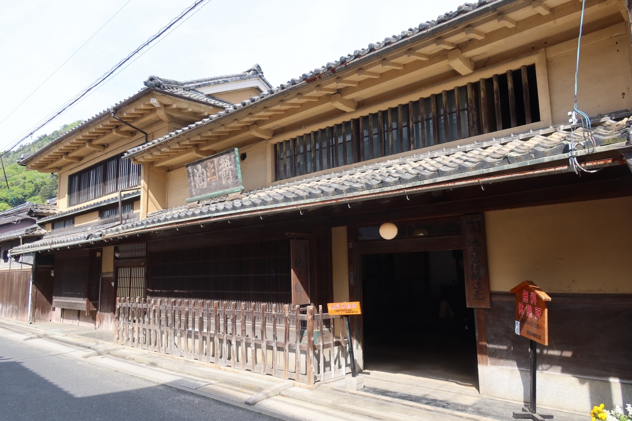 高梁市の本町通り沿いには古い商家が多く並ぶエリアですが、その中でも格段の風格を持つ商家が池上邸です。醤油製造で財をなした商家で現在は高梁市商家資料館として無料休憩所としても公開されています。中に入ると番台や醤油を醸造した樽、年季の入った梁を見ることができます。
