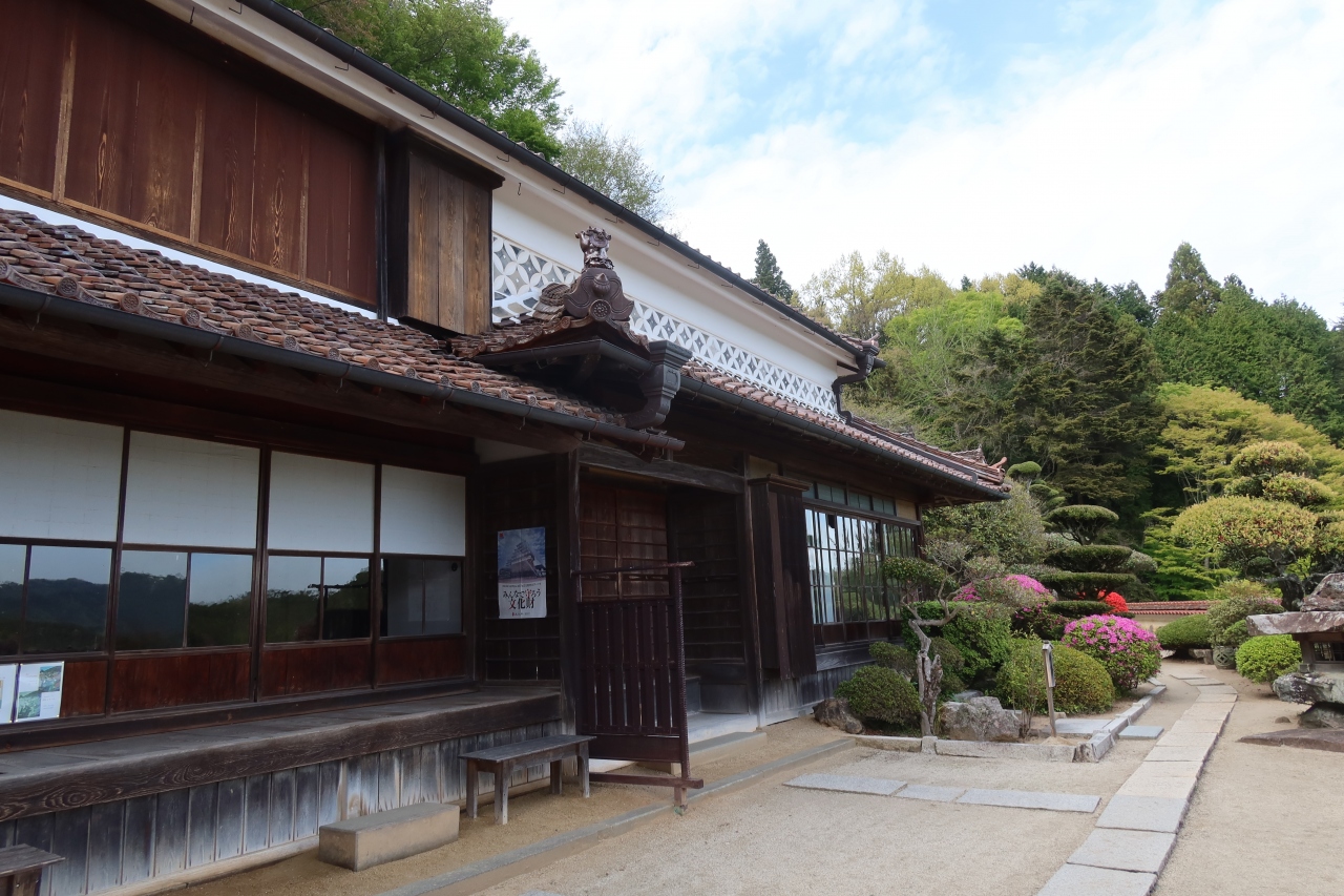 吹屋ふるさと村から北西に2,3km行った新見川上線を少し山の中に入った所に西江邸があります。江戸時代に代官御用所を兼ねた惣代庄屋を務めた家で、広兼邸と並んで吹屋ベンガラで名を成した家です。予約しないと中は見学できないため、外観だけの見学でしたが、見るからに豪商であったことが伺える邸宅です。