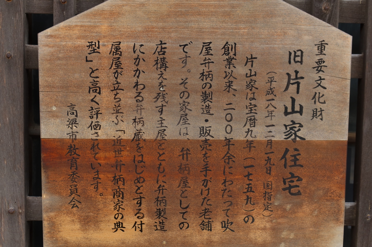 吹屋ふるさと村の西側、街道の南側にある建物が旧片山邸です。屋号を胡屋と言い、吹屋の片山家の総本家の建物です。江戸時代後期の1759年からベンガラ製造の行ってた旧家です。切妻造り平入りの母屋にはベンガラ格子の上に海鼠壁が特徴的で、重要文化財に5棟が指定されています。共通券が便利です。