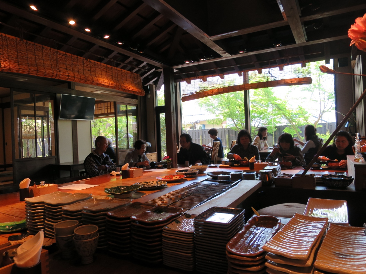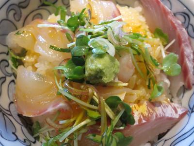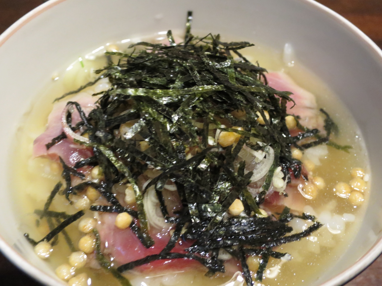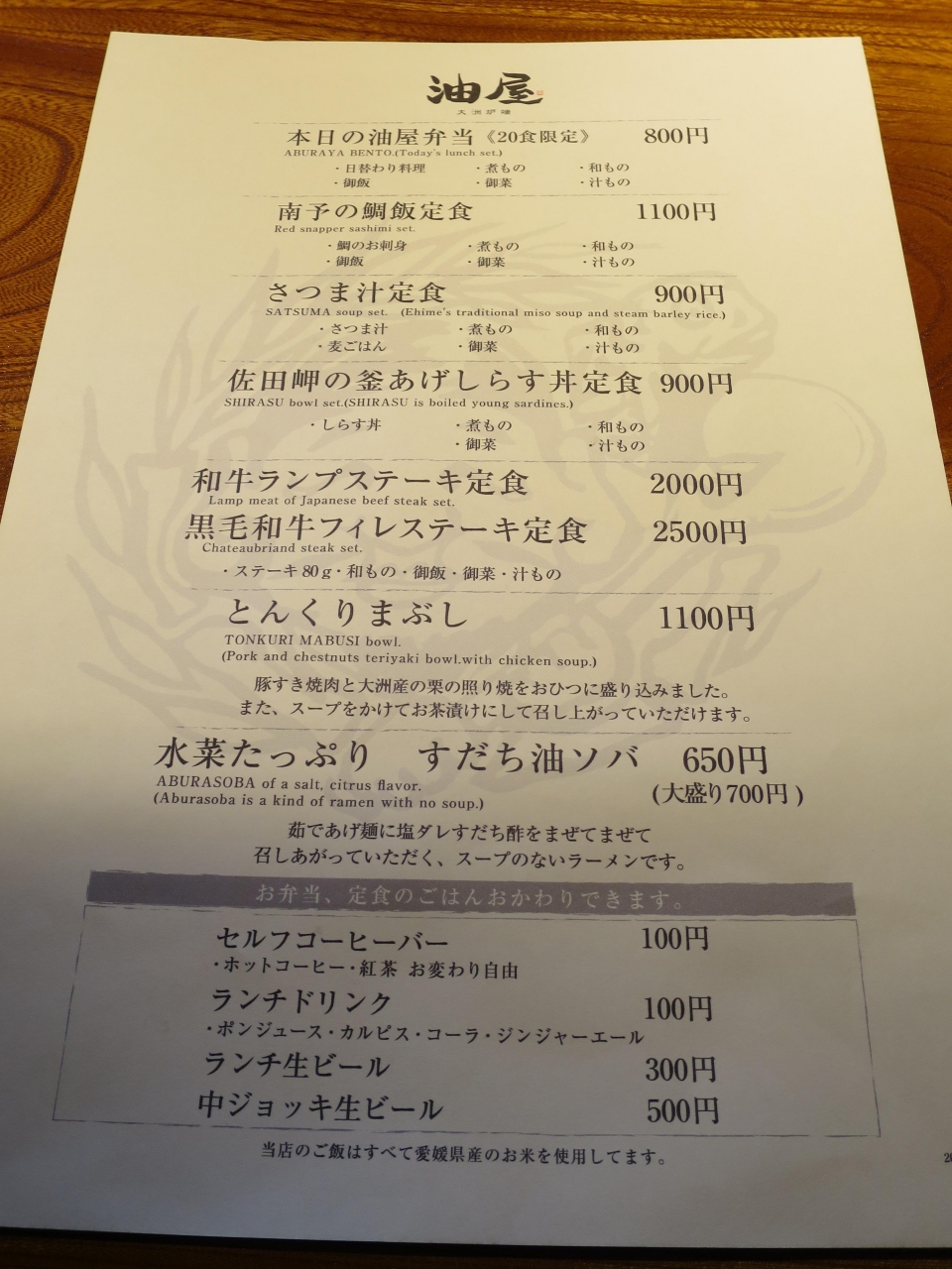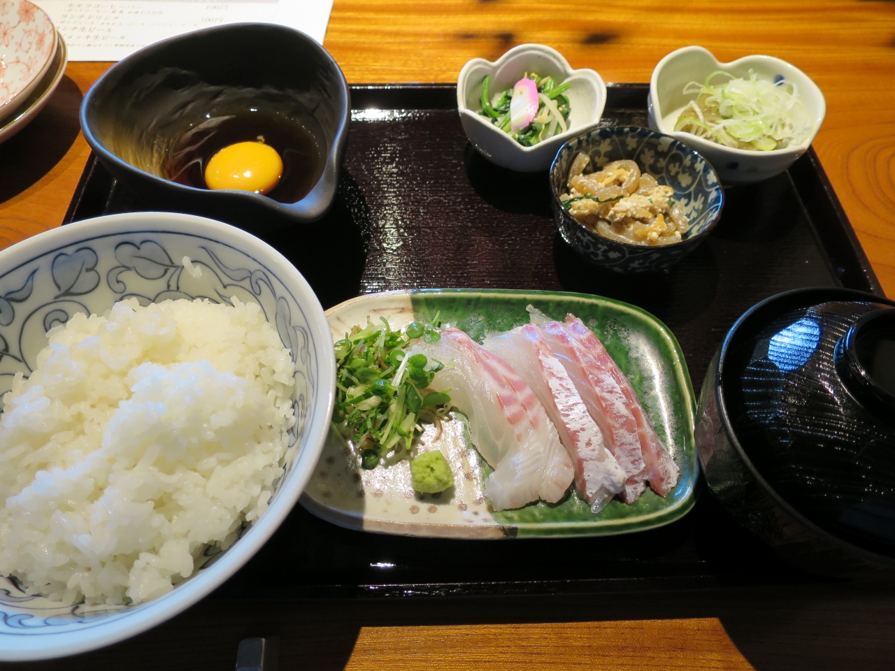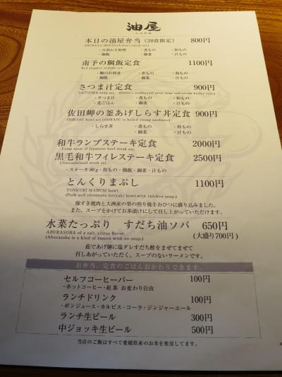 蔵を改装した店内はとても明るくレトロな感じがとてもいい感じです。炉端の前の席に着き注文したのは鯛飯定食、それと気になったすだち油そば。鯛飯定食は鯛飯他5品が付いて新鮮な鯛を御飯に乗せ、卵を溶いた甘い醤油をかけて頂く御飯。とても美味。そして、すだちの掛かった油そばは大根おろし、水菜がのり和風な感じの汁無しそば。すっきりした味でまったく油っこくなく、値段も安くお薦めです。- 旅行時期