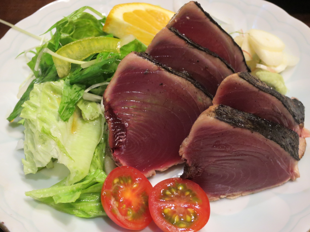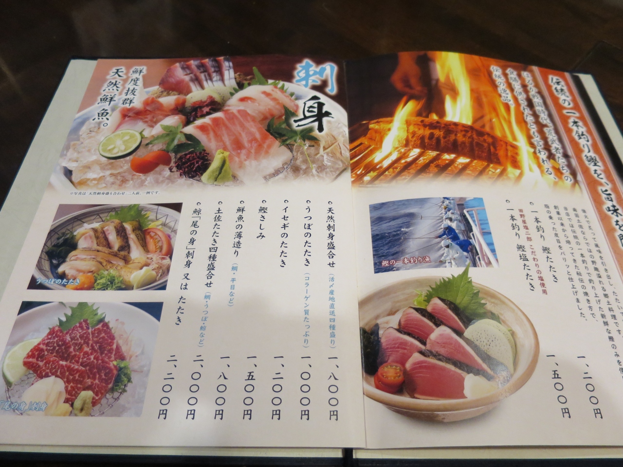 高知に行くなら絶対ここが良いと薦められ、予約を入れて行きました。予約していたからか通された部屋は2階の個室。コースにはせずアラカルトで鰹料理を中心に頼みました。鰹の刺身、鰹のたたき、鰹茶漬け、四万十鶏のもも肉一本揚げ、酒盗等、どれもこれも美味で酒が進みますが、一番美味しかったのは鰹の塩たたき。新鮮な鰹だけに塩を付けて食べるだけなのとても美味しいんです。これは、ここでしか食べられないですね。- 旅行時期