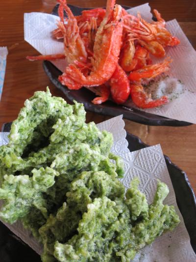 高知は中村の四万十川沿いに走る国道321号線沿いにある土産屋と食事処です。1階が土産処、その奥の階段を上ると2階に食事処があります。客席は屋内とベランダにあり、四万十川を見ながら食べられるベランダがお薦め(風が強いと大変です)。頂いたのはうな重ではなく安いほうのうな丼。そして川海老の揚げ物、アオサの天ぷら。肉質のあるうなぎは四万十ならではでしょうか。川海老は大きく食べ応えがあります。アオサは香が良い。