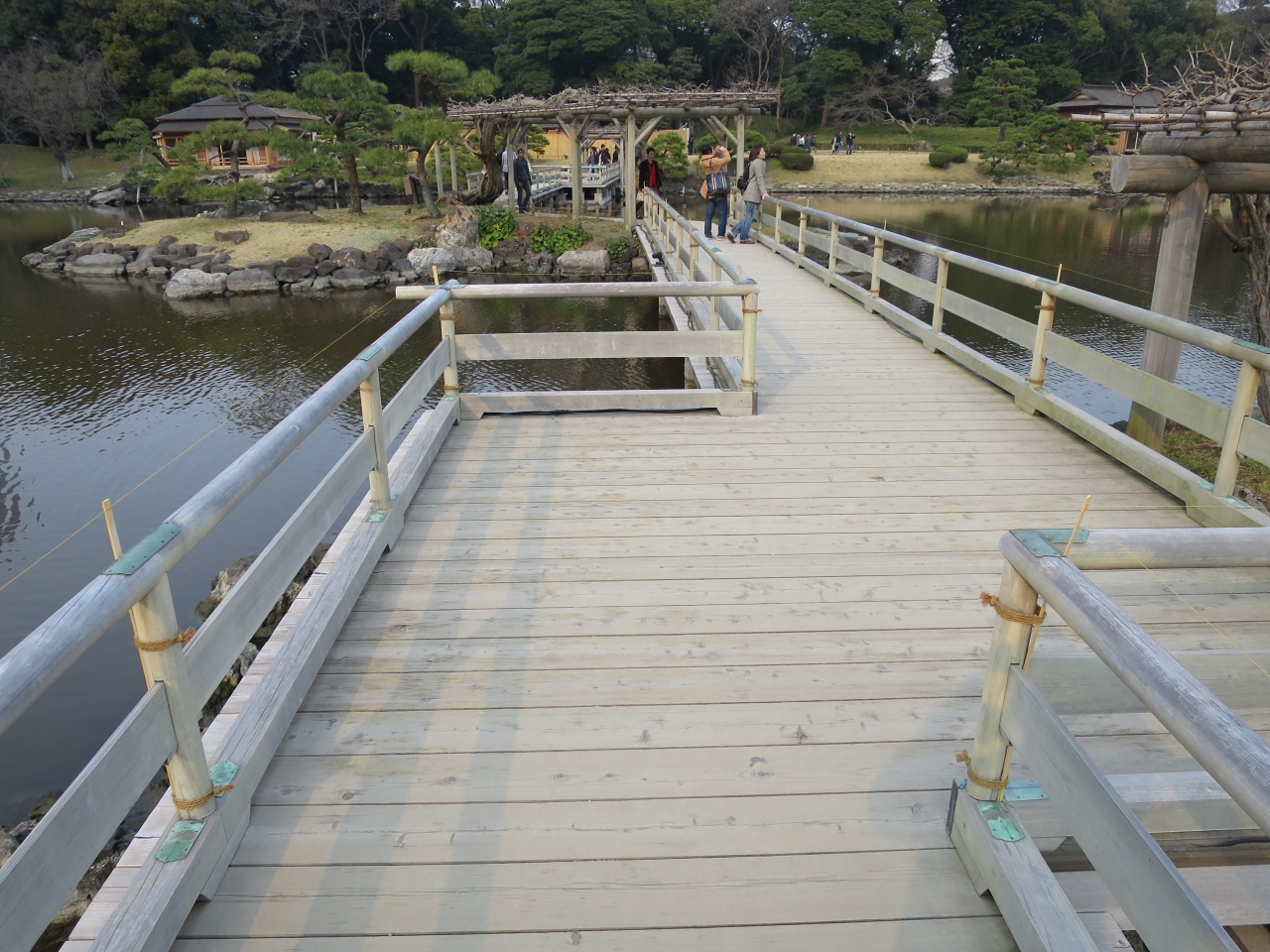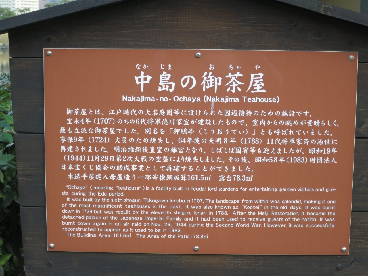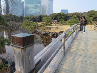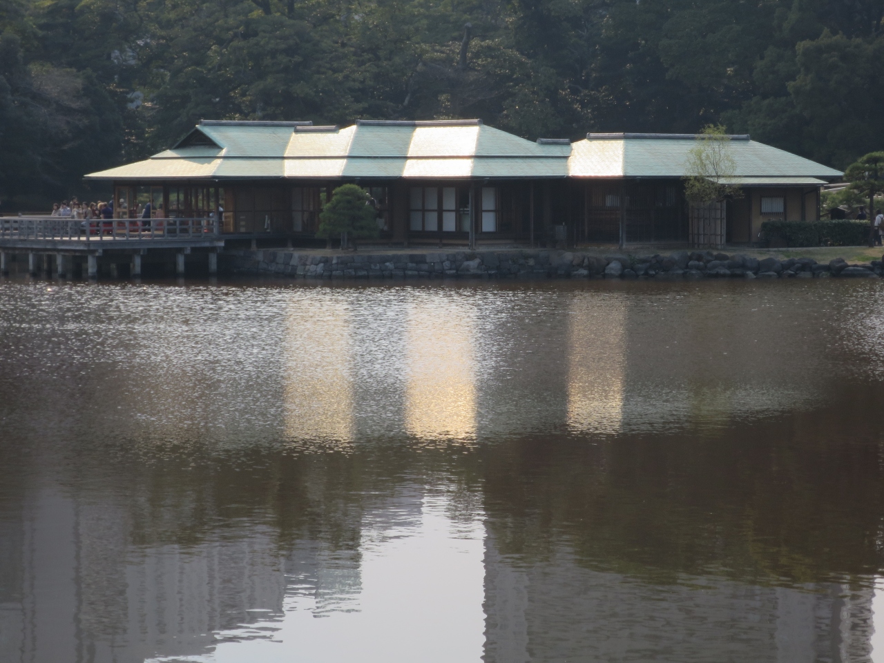 浜離宮恩賜庭園一の名所 潮入の池に浮かぶ中島に建てられたお茶屋です。現在の建物は再現されたものですが、休憩所となっており抹茶、和菓子のセットを頂くことができます。しかしとても混んでおり、お伝い橋まで並ぶほどなのでお茶はしませんでしたが、自由に中に入って見学することができます。浜離宮の茶屋では唯一ここだけです。池に面してテラスの様になっており、そこから潮入の池を一面に見渡せます。