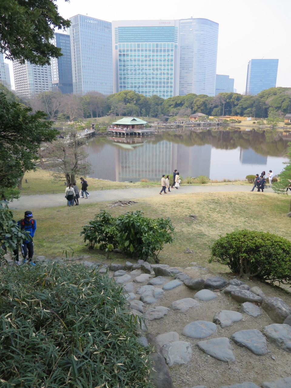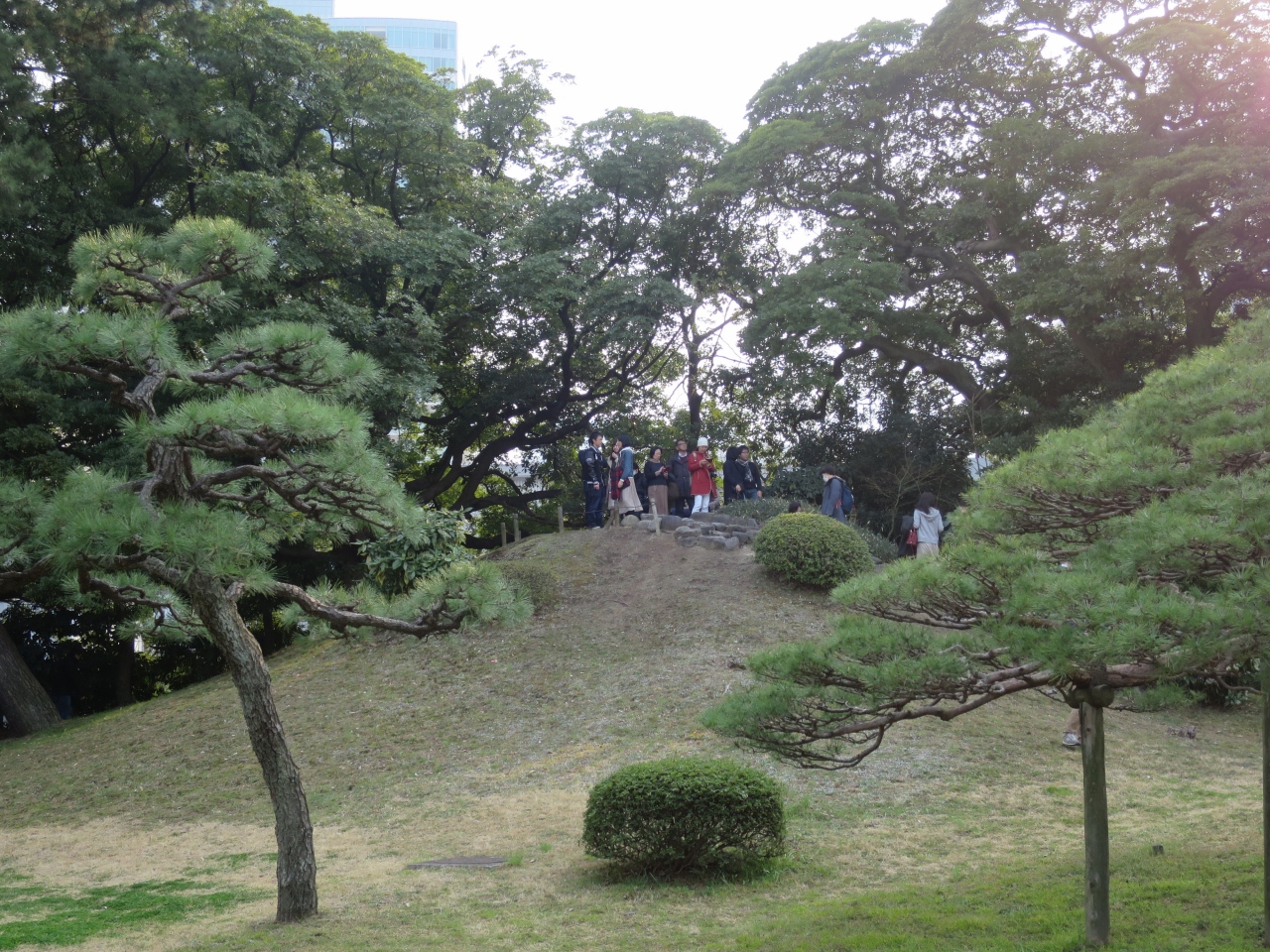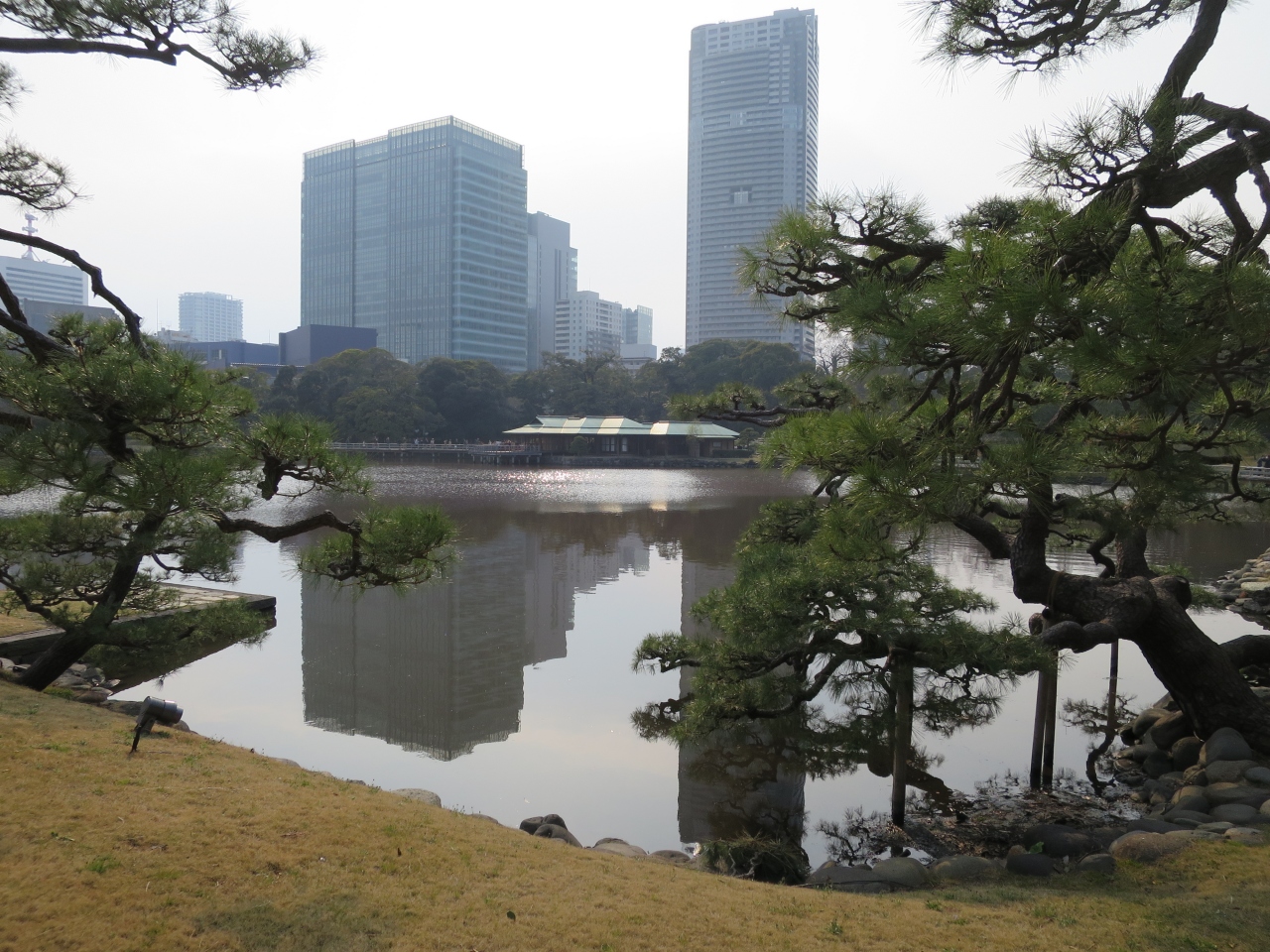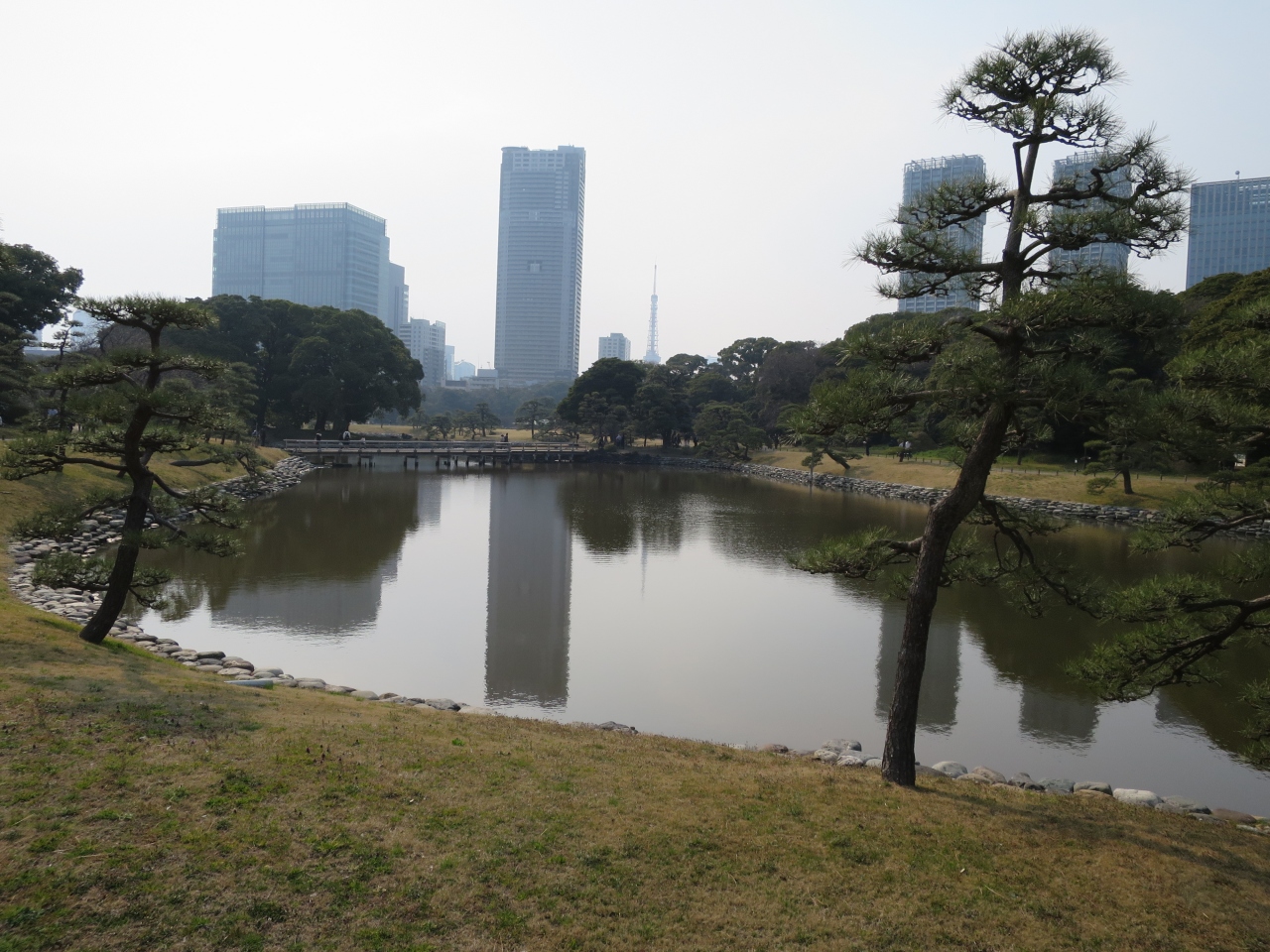 浜離宮恩賜庭園一の名所 潮入の池に浮かぶ中島に建てられたお茶屋です。現在の建物は再現されたものですが、休憩所となっており抹茶、和菓子のセットを頂くことができます。しかしとても混んでおり、お伝い橋まで並ぶほどなのでお茶はしませんでしたが、自由に中に入って見学することができます。浜離宮の茶屋では唯一ここだけです。池に面してテラスの様になっており、そこから潮入の池を一面に見渡せます。