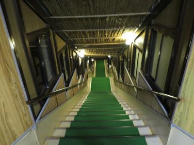 大浴場も行きましたが、大浴場は別館にあり本館から階段を下り渡り廊下を通って大浴場に行きます。脱衣場から入ると室内の大浴場はありますが、そこから露天風呂に行くにはそこからまた、回廊を通って行かねばならず、大浴場露天風呂からの眺めは良いですが、遠過ぎです。