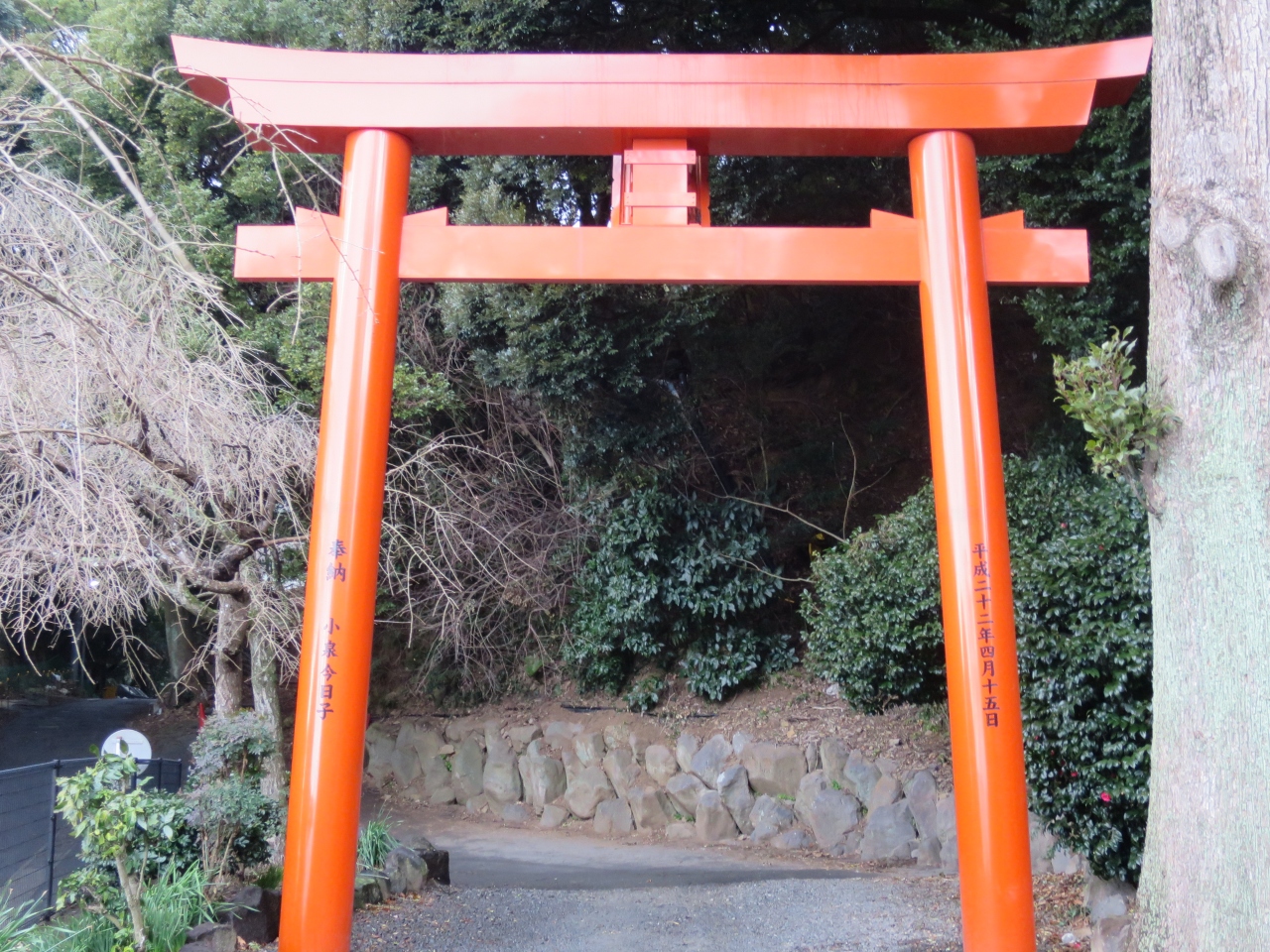 境内には源頼朝と北条政子が腰掛けたと言われる腰掛石、光り石などの見どころも多いですが、気になったのは小泉今日子が奉納した朱色の鳥居。どんな関係でこちらに奉納したのか気になります。