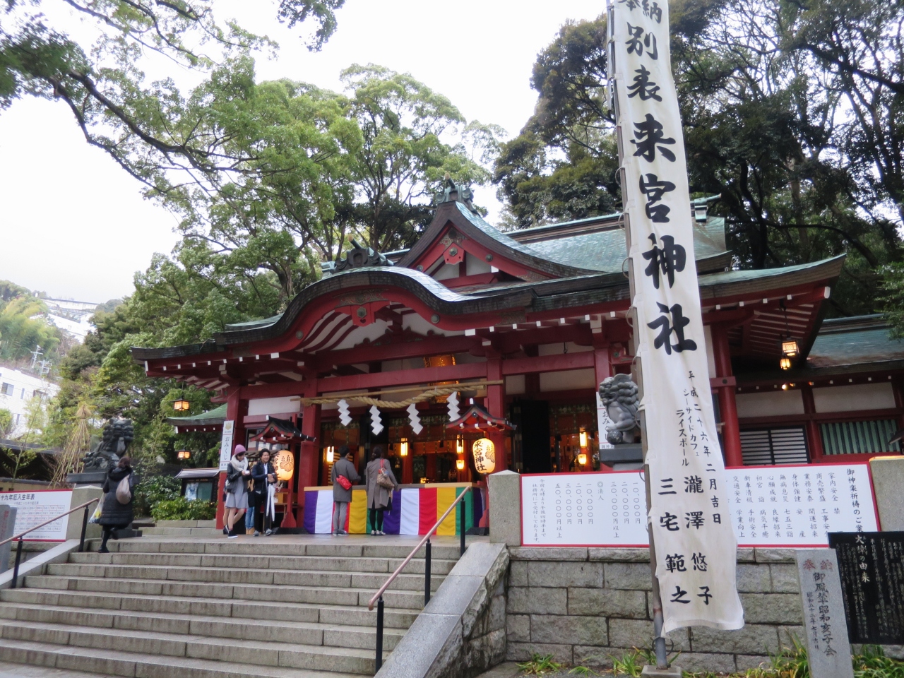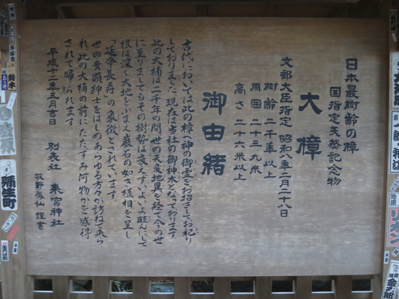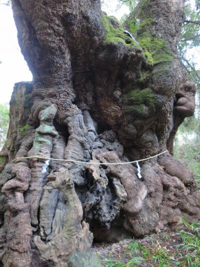 来宮駅から5分程歩きJR線のガードを潜った正面に熱海一のパワースポット 来宮神社はあります。パワースポットと言われる由来は境内にある大楠。正面から入って右手に大楠があり、この大楠も十分巨大ですが、目的の大楠とは違います。参道を先に進むと石段を上った先に本殿。先ずはここで、お参りをしましょう。目的の大楠は本殿の左手を回り込んで進むと樹齢二千年以上と言われる御神木の大楠が目に飛び込んできます。今まで各地の大楠を見ましたが、この大楠ほど威厳があり大きな大楠は見たことがありません。来る人皆が手を合わせるのも分かります。大楠を一周すると一年長生きすると言う話で、大楠を一周。歴史を感じさせる大楠でした。