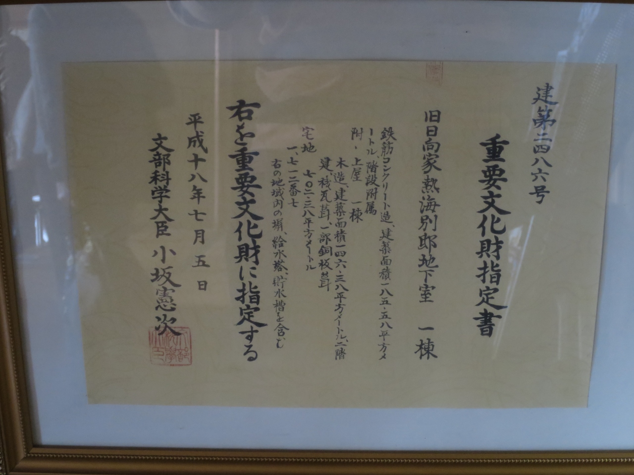 熱海の東山と言われる春日町の高台に旧日向別邸があります。ここの見どころは何と言っても日本に唯一のブルーノ・タウトの設計した地下室。事前に熱海市役所で予約して見学しました。階段を下りて行くと一見普通の住宅ですが、銀座和光を設計した渡辺仁の設計。1階からは正面に庭越しに海が全面に見渡せます。地下室はこの庭の下にあります。ボランティアの案内の人に続いて階段を下りていくと、電球がぶら下がり、凝ったデザインのダンスホール。その奥に進むと雛壇のある洋間と日本間。ボランティアの人が親切丁寧に約1時間程掛けて案内してくれます。300円でここまで見せてくれるのは嬉しい限りです。保養所として使われていてオリジナルではない壁紙とかもありましたが、是非元の姿に復元して欲しいものです。