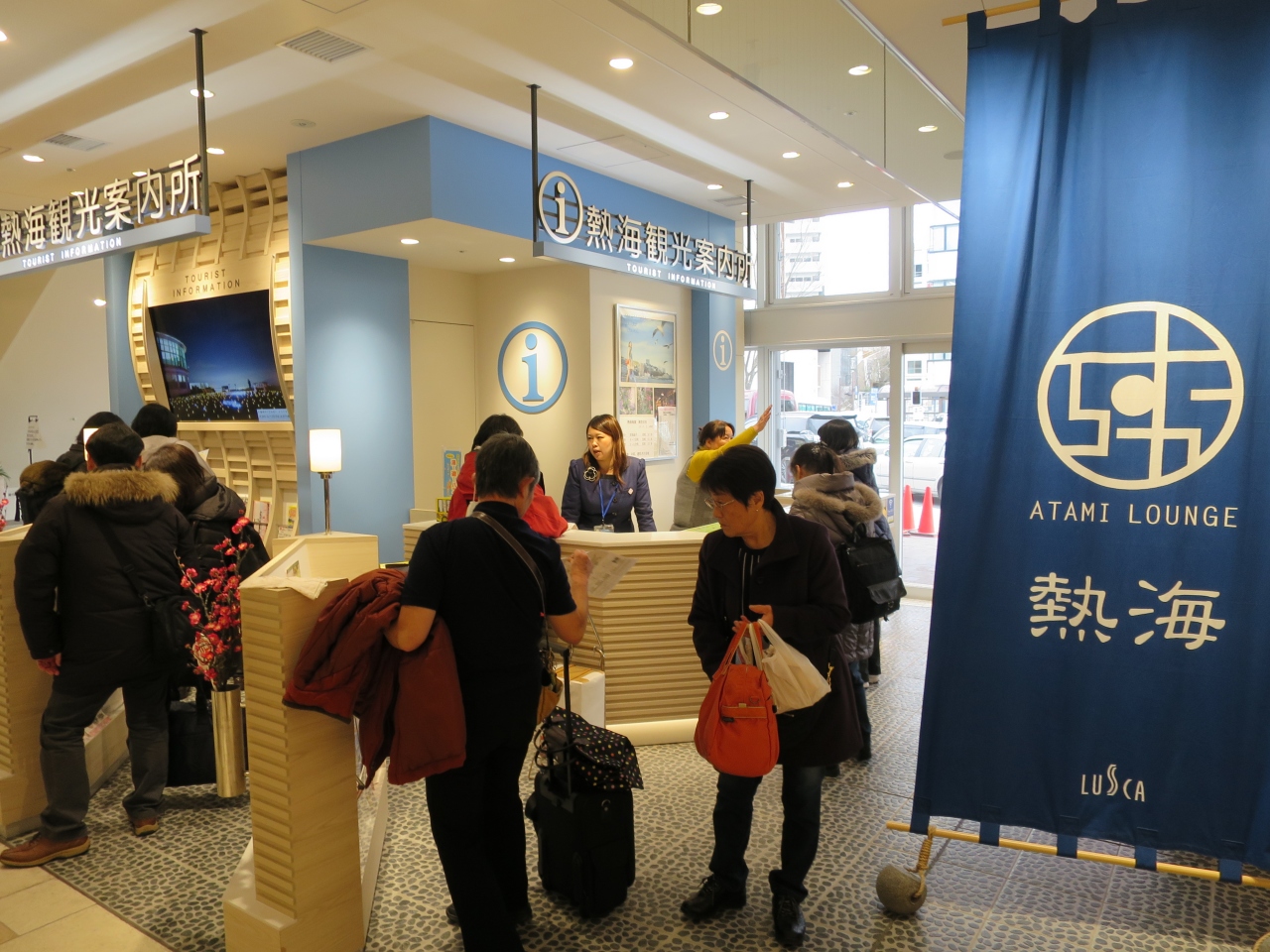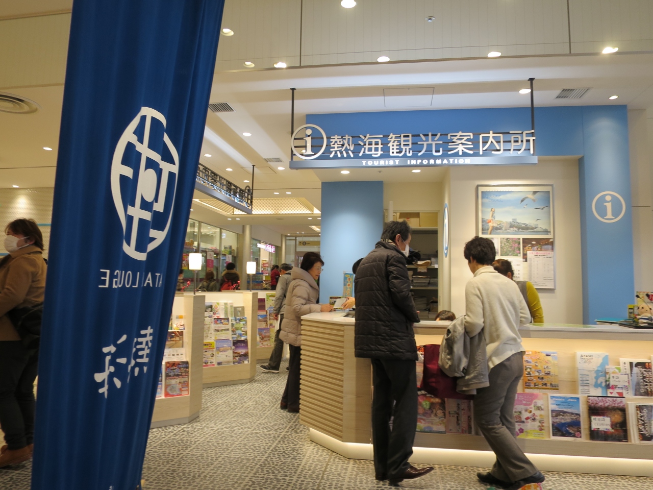熱海駅駅ビル改札口西側にあるラスカ熱海の中、窓側に熱海駅観光案内所(コンシェルジュ)があります。美術館などのパンフレットが置かれ気軽に観光情報を収集できます。窓口にも案内係の人が二人おりますが、親切丁寧に案内してくれるからか、少し待たされるのにちょと難があります。観光案内所の前には椅子が沢山置かれているので休憩所としても大人気です。