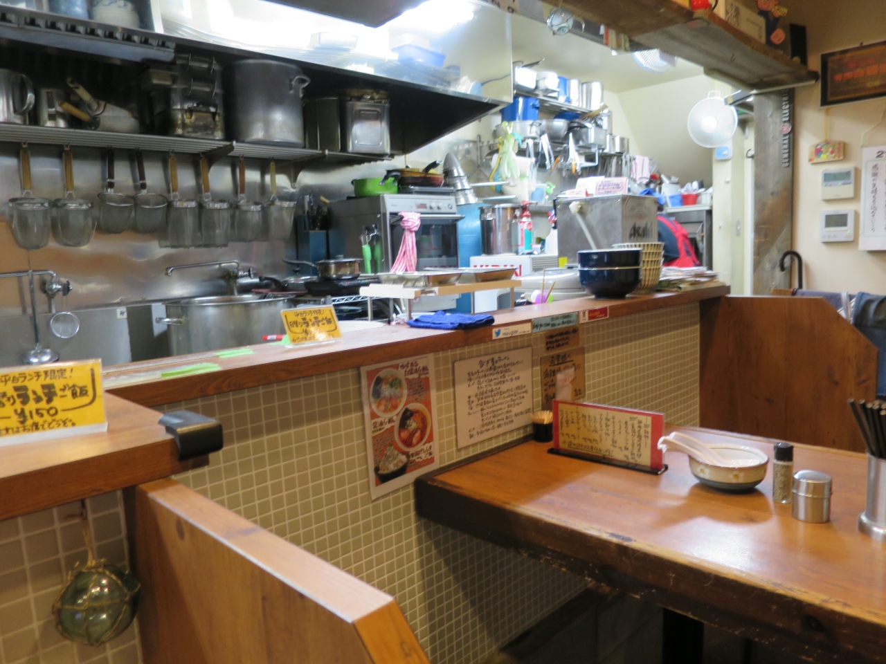 学芸大学の東口商店街の外れの方にあるラーメン店です。店内は少し暗めでオールドな雰囲気。カウンター席とテーブル席があり、ご夫婦で営業して居るようです。平日昼2時頃は空いていました。