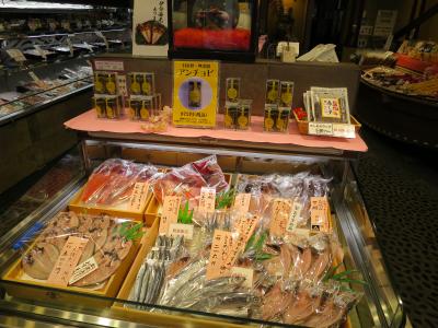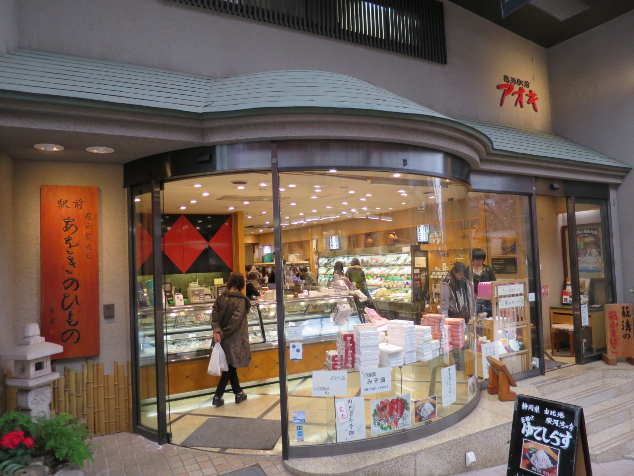 熱海駅前の平和通り商店街と仲見世通り商店街に挟まれた一角に熱海駅前アオキはあります(熱海駅前店は伊豆山店とは異なります)。干物のお店なので干物があるのは当たり前ですが、それ以外にも味噌漬け、塩辛、佃煮、海苔なども扱っており、色んなお土産を買えます。駅からも5分も掛からない所なので、電車に乗る前の急ぎの時でも便利。