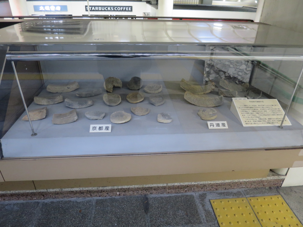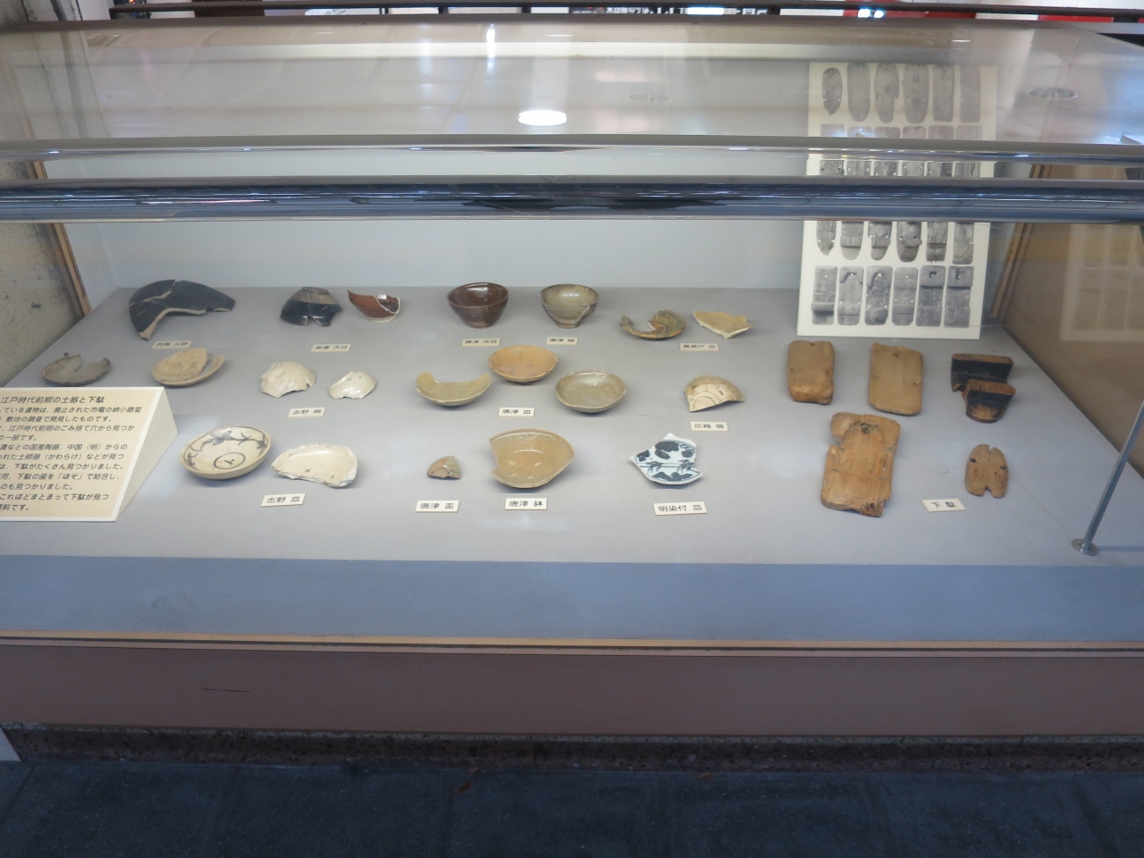 地上には何も残っていませんが、地下鉄の駅コンコースには地下鉄建設時にこの辺りから出土した出土品の茶碗、杯、瓦等が展示されており、昔の生活の一端が垣間見れます。展示品は少ないですが、このような出土品は資料館や博物館でしか見られませんし、また無料で見られるのが良いですね。- 旅行時期