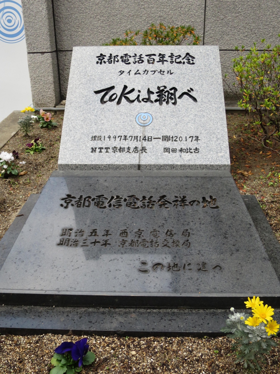 三条通り東洞院にあるNTT西日本京都支店の脇にある植え込みの中に教諭所(宣教館)跡の駒札が立っています。