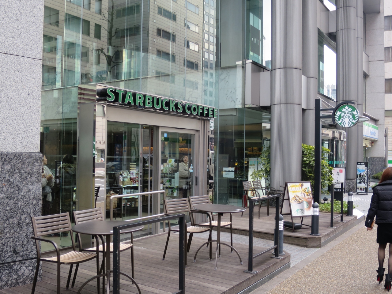 三条烏丸を下った池坊会館の隣のビル1階にあるスターバックスコーヒーです。この店の魅力はなんと言っても、オープンスペースの店内に大きく開いた窓の正面に立つ六角堂を見ながら、コーヒーをまったりと飲めるところです。周囲はオフィスもあるので、ビジネスマンも多いです。こんなコーヒー店はなかなかありません。