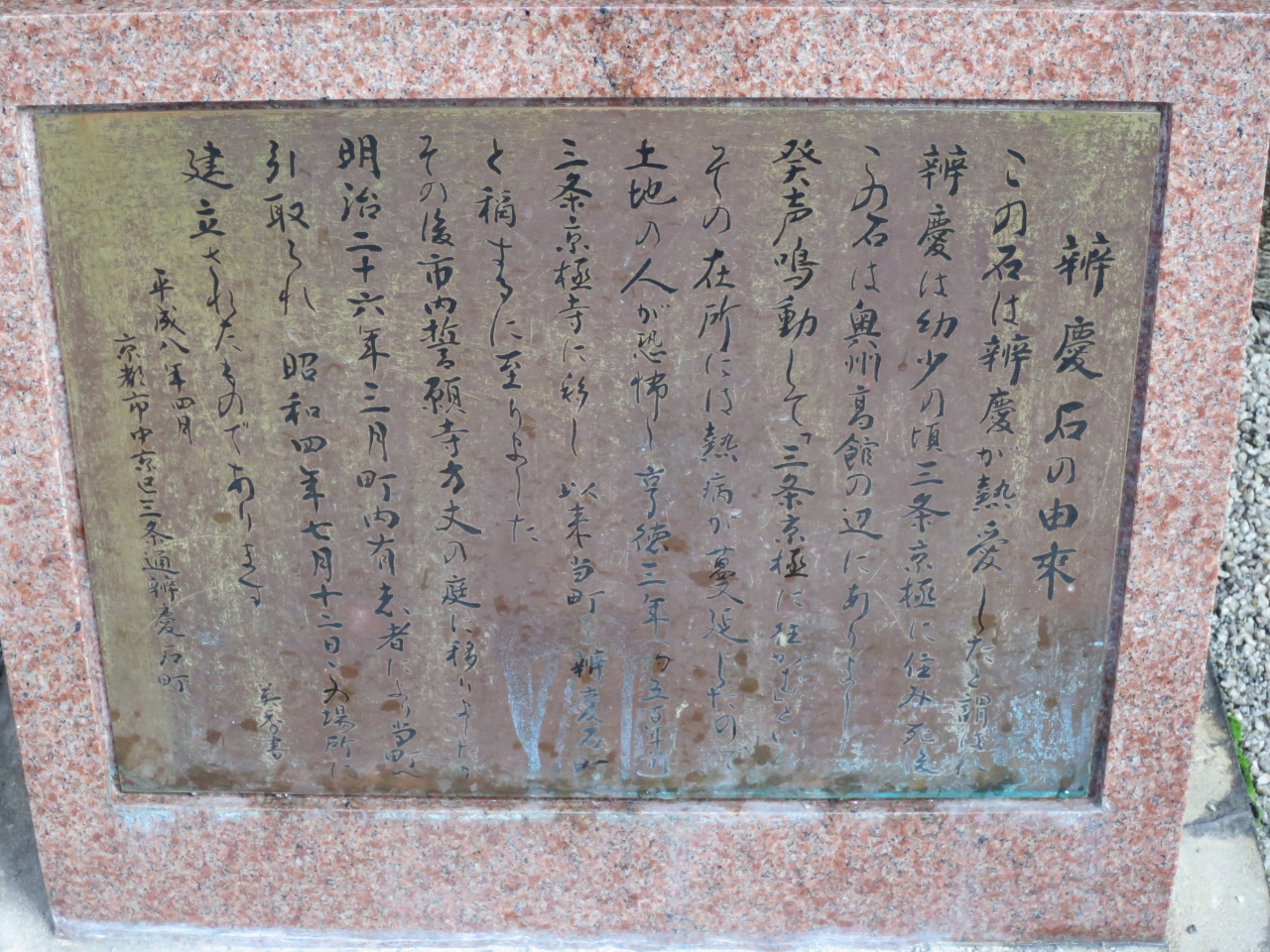 三条通り沿いは平安期から近代まで京都の中心的な場所であり、色々な史跡跡の看板があり、歩いていると以外な発見があり面白いです。- 旅行時期