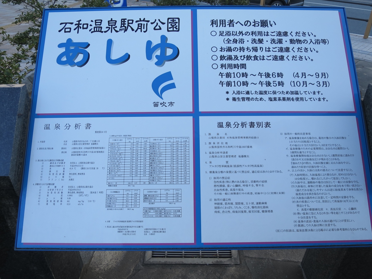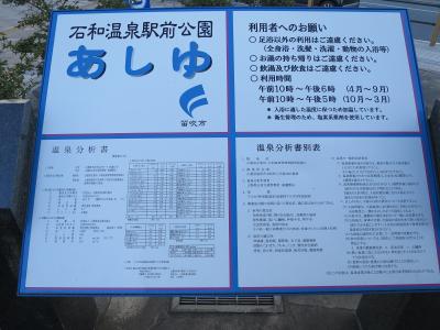 石和温泉駅南側ロータリーの脇の敷地にある足湯の施設です。電車を降りて宿の車の迎え待ちの時間に浸かりました。勿論、無料です。屋根もあるので雨の日でも問題ありません。浸かっていると、足湯ですが体がほっこりしてきます。山梨を代表する温泉地だけあり、手入れも行き届いており、観光客も多いです。