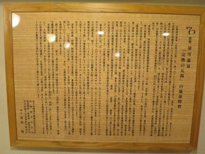 この宿の良い所は完の湯、熟の湯と名の2つの源泉のお湯です。高温と中温のお湯で湯船には両方の湯が注がれ完熟の湯と言います。両湯ともに飲泉もできます。お湯に浸かると肌もツルツル、湯上りほっこりのとても良い湯でした。