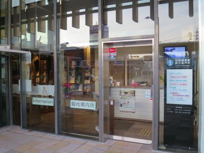 石和温泉駅の南側ロータリーに面した駅下に石和温泉観光協会駅前案内所があります。久々に石和温泉に来たのですが、駅舎が2階建ての橋上駅にリニューアルしており、観光案内所も小さな小屋からお洒落なスペースにリニューアルしていました。