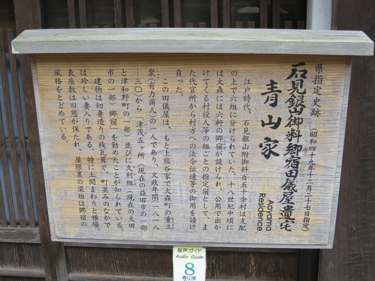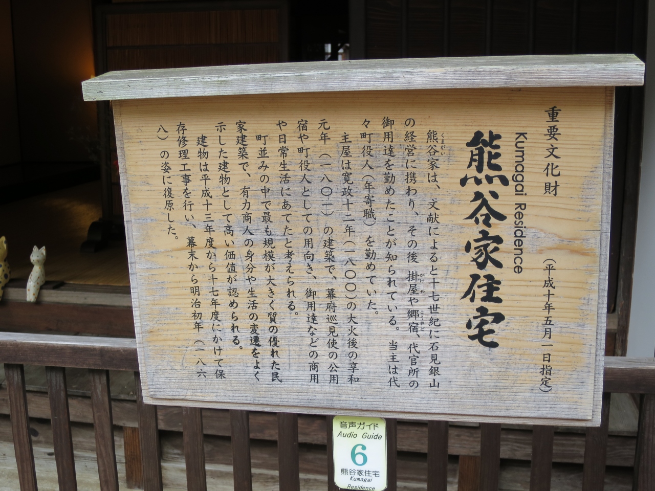 石見銀山 大森地区の古い町並みの代官所跡に近い場所にある商家の住居です。石見銀座は世界遺産に登録されていますが、重要文化財はこの熊谷家が唯一指定されているだけです。中にはいってみれば一目瞭然。銀山で見学した住居の中では一段と大きく、母屋の他、5つの蔵、納屋があります。1801年に建てられた建物だそうですが、修復されとても綺麗な状態。各部屋では当時の家財、衣服なども展示されています。
