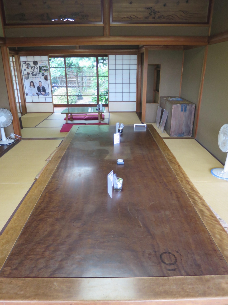 見物は食堂にある古稀庵にあったと言うけやき一枚板の大座卓。とにかく大きくてビックリ。とても贅沢な物です。