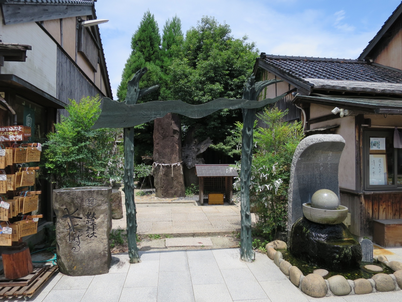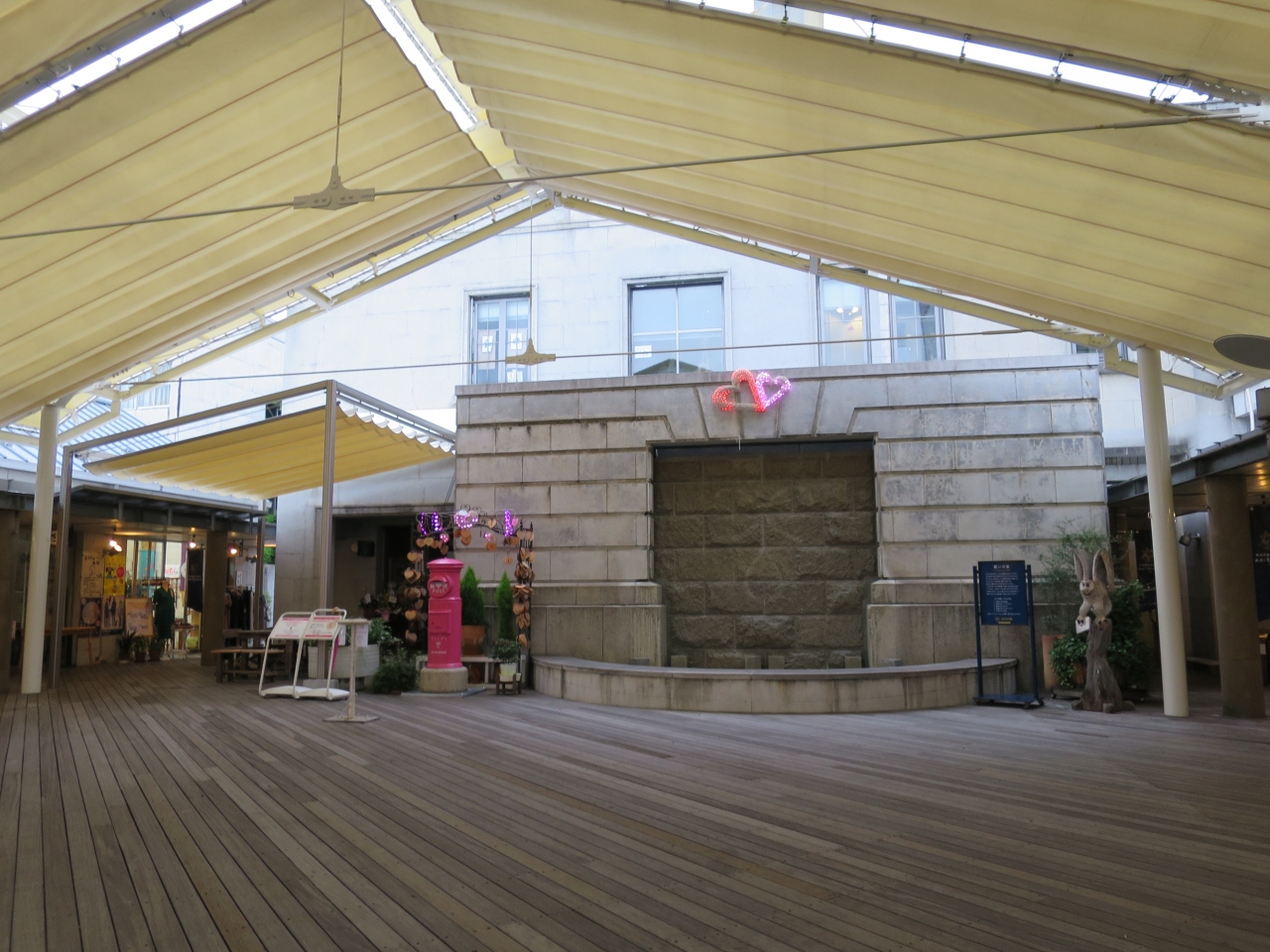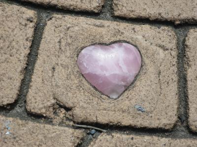 カラコロ工房の周辺には何故か縁結びスポットが多い。カラコロ大黒の前の石畳にさりげなく設置されているハートのパワーストーンもその一つ。