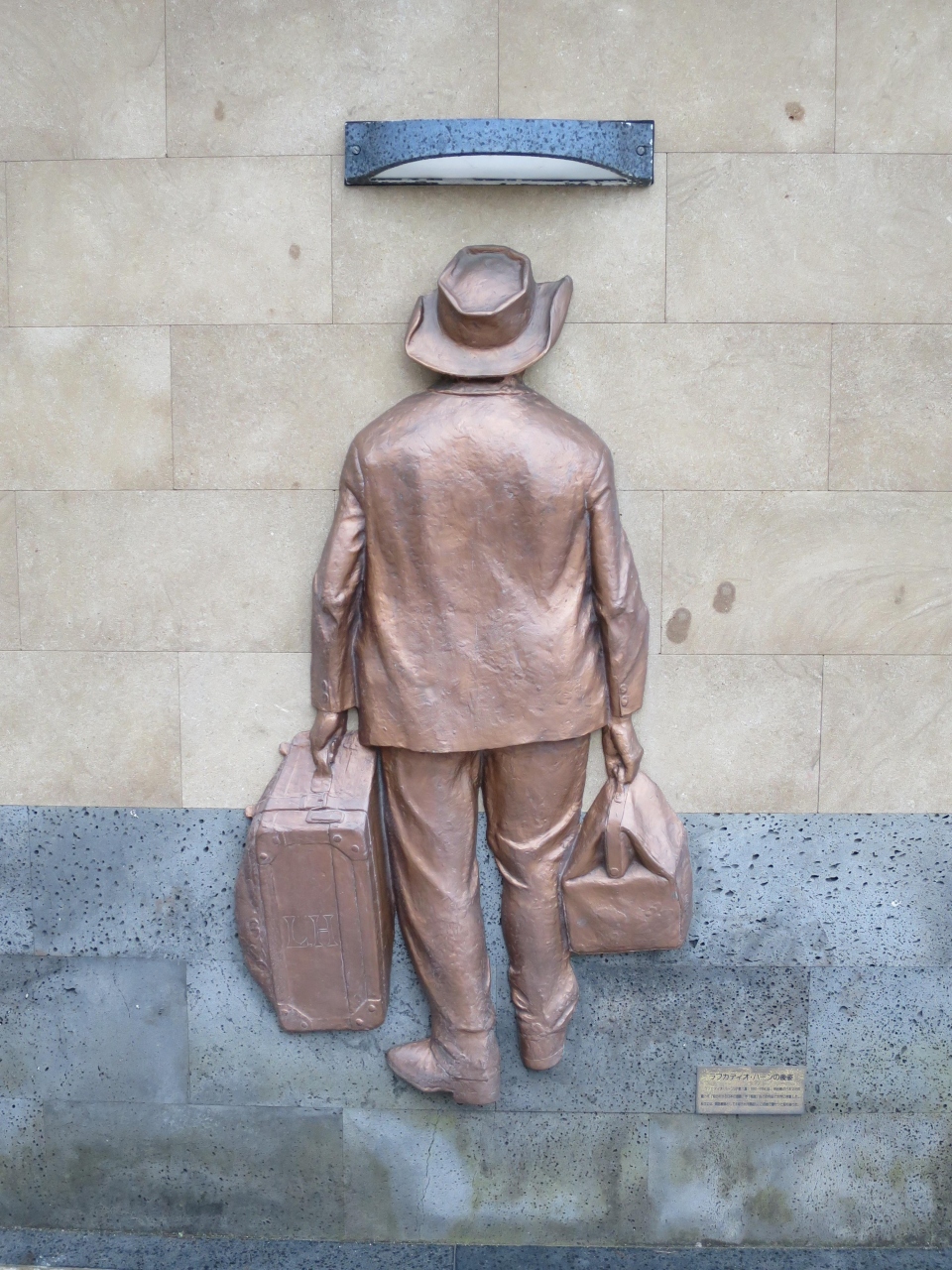 公園の奥にある石壁にヘルン(小泉八雲)の旅行カバンを持った後ろ姿のレリーフ?があり撮影スポットとしてお勧めです。- 旅行時期
