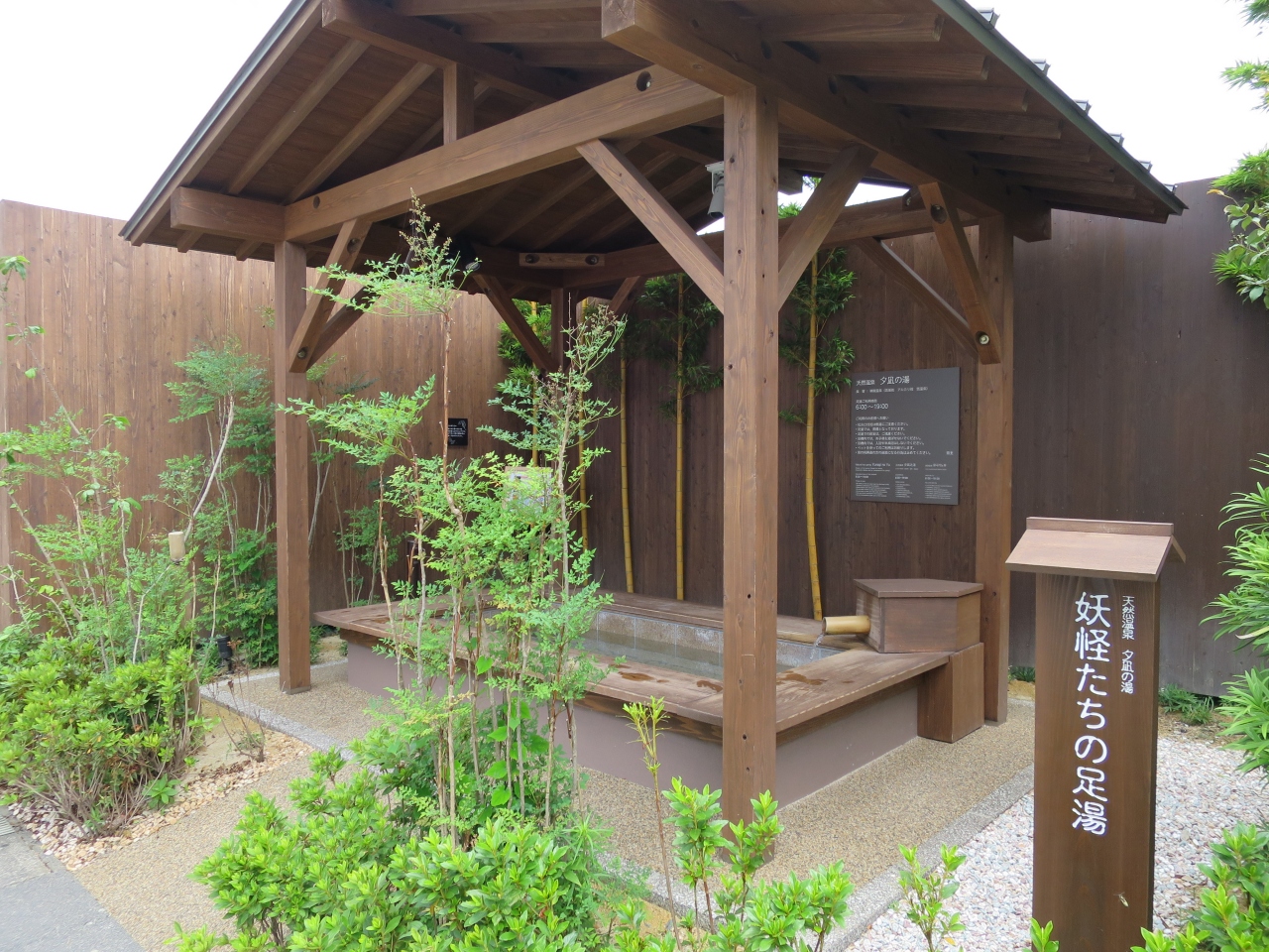 境港駅からすぐの所にある旅館 御宿野乃の前にある足湯で「妖怪たちの足湯」と言う名前です。境港に温泉があるとは知りませんでした。