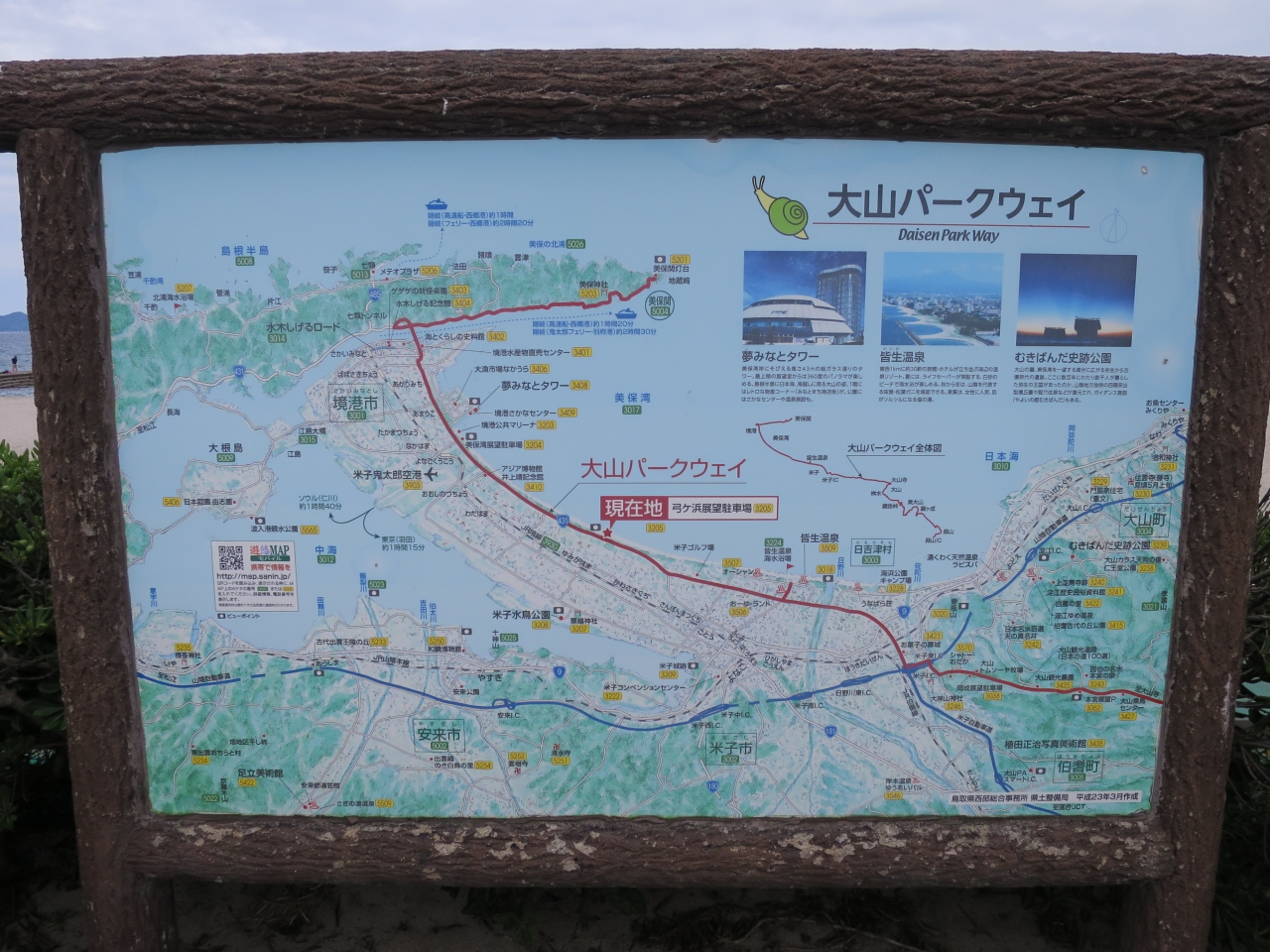 道の駅の施設としては、良くありがちな農産物直販、喫茶、軽食店があり、あまり特徴はありません。唯一、中海越えに遠く大山が見えるのがポイントです。- 旅行時期
