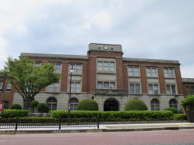 米子駅から歩いて15分程の国道沿いにある米子市庁舎として建てられた近代建築の建物です。昭和5年に建てられた建物は鉄筋コンクリートの3階建て、1階正面には車寄せがあり、2階から上は赤レンガが貼られた左右対称の均整の取れた建物です。でも、何となく控えめな感じがします。