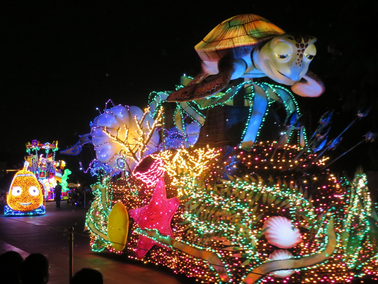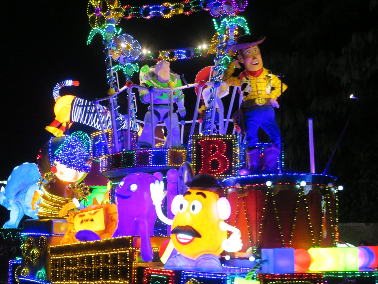 ディズニーランドで夜に行われるパレードです。ディズニーランドに来たならばこれを見なければ、帰れません。