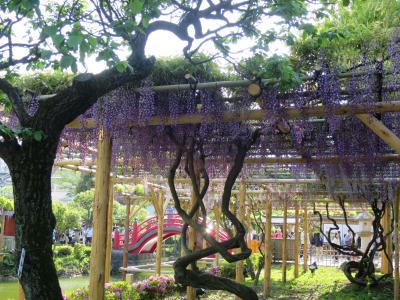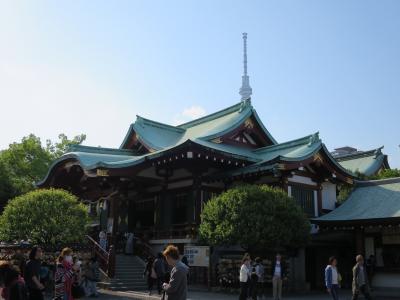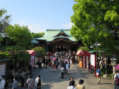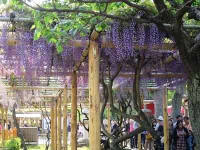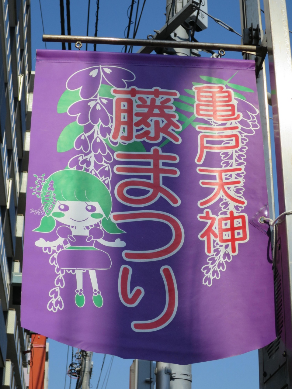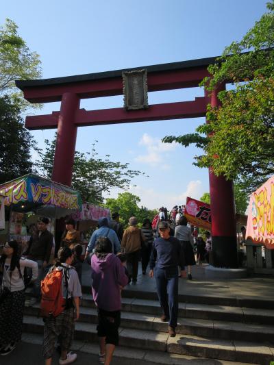 浮世絵にも描かれている亀戸天神の藤の花を観に、藤まつりの時期に亀戸天神に行って来ました。参道入り口から、境内の中まで屋台が並び、沢山の人でごった返していました。しかし、肝心で藤の花は、これで満開なの?と思うほど小さい藤の花の房ばかりで、期待して行ったのにがっかりでした。