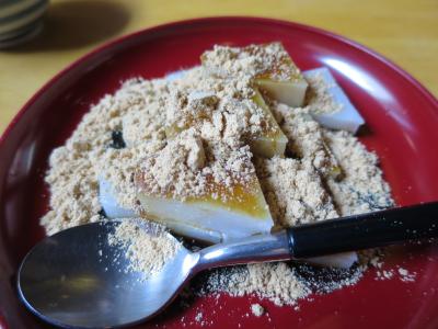 それでも店内で食べる出来立てのくず餅は絶品。並ぶ価値のあるお店です。他にもあんみつ等も食べられます。- 旅行時期