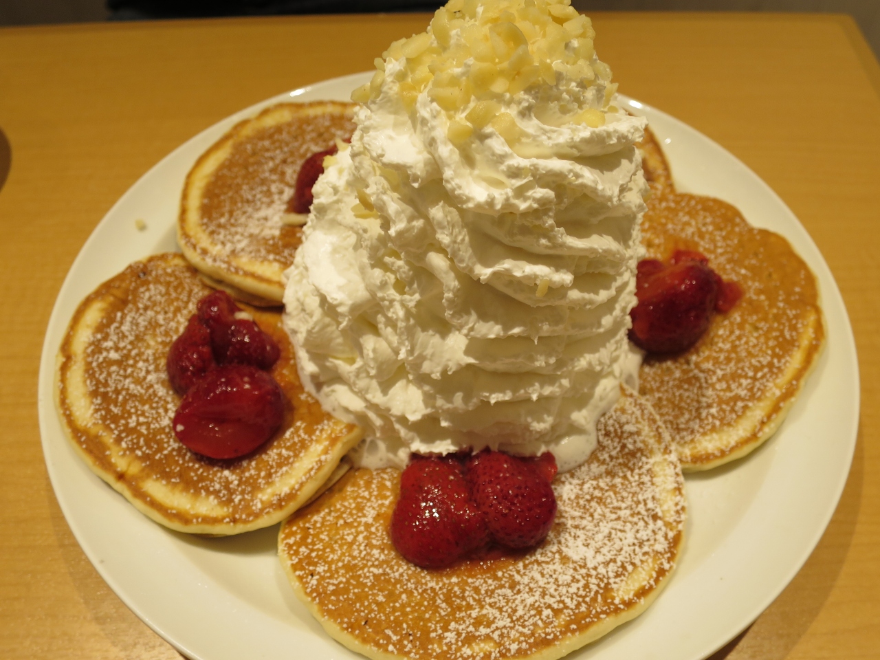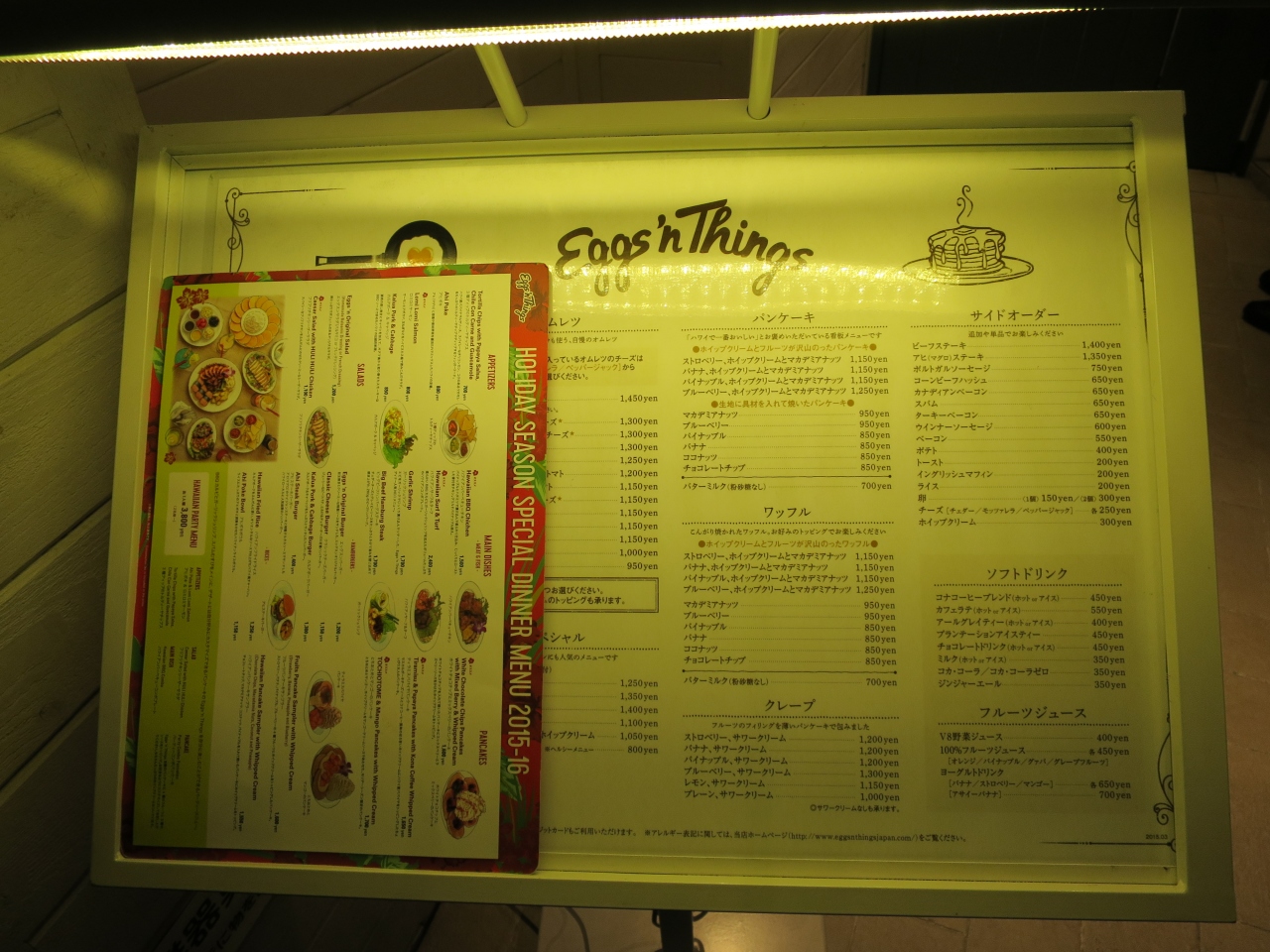 京都 四条烏丸から東に向かい、吉野家のある角を下がった先にエッグスンシングス 京都四条店があります。他の店舗は殆どの所が入店の並ぶのが必須ですが、こちらのお店は並ばずに入れる程空いてます。と言って他店とパンケーキの味が劣るとか、サービスが悪いと言うことは有りません。