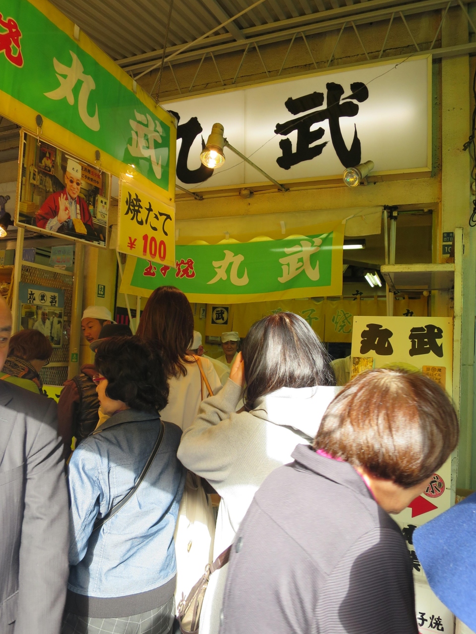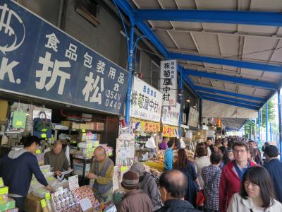 築地場外と場内の境にある波除通りの場内沿いに築地にっぽん漁港市場があります。新潟、高知、北海道、網代等各地の漁港の水産物を扱うお店が並びます。各地毎特色のある物産が揃ってますが、お勧めは高知の鰹ですね。