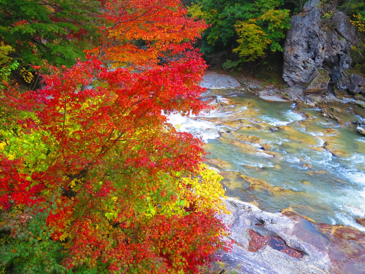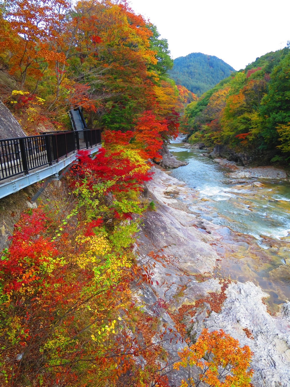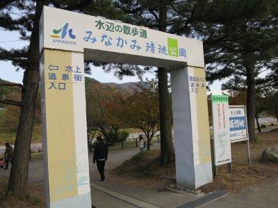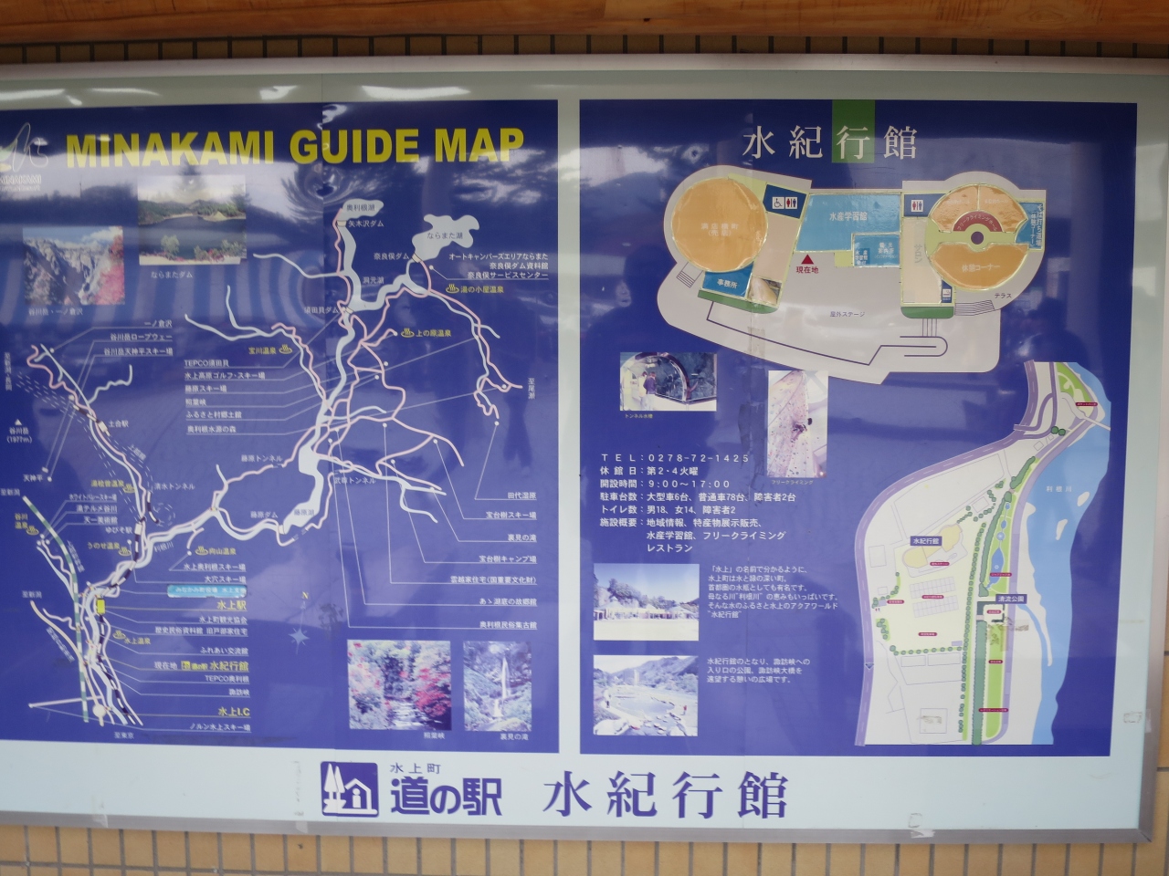 国道291号線の水上温泉の手前入口、諏訪峡の近くの道の駅 水上町水紀行館があります。諏訪峡を散策するには、ここに車を駐車して川沿いを歩いていくと便利です。また、足湯もあります。